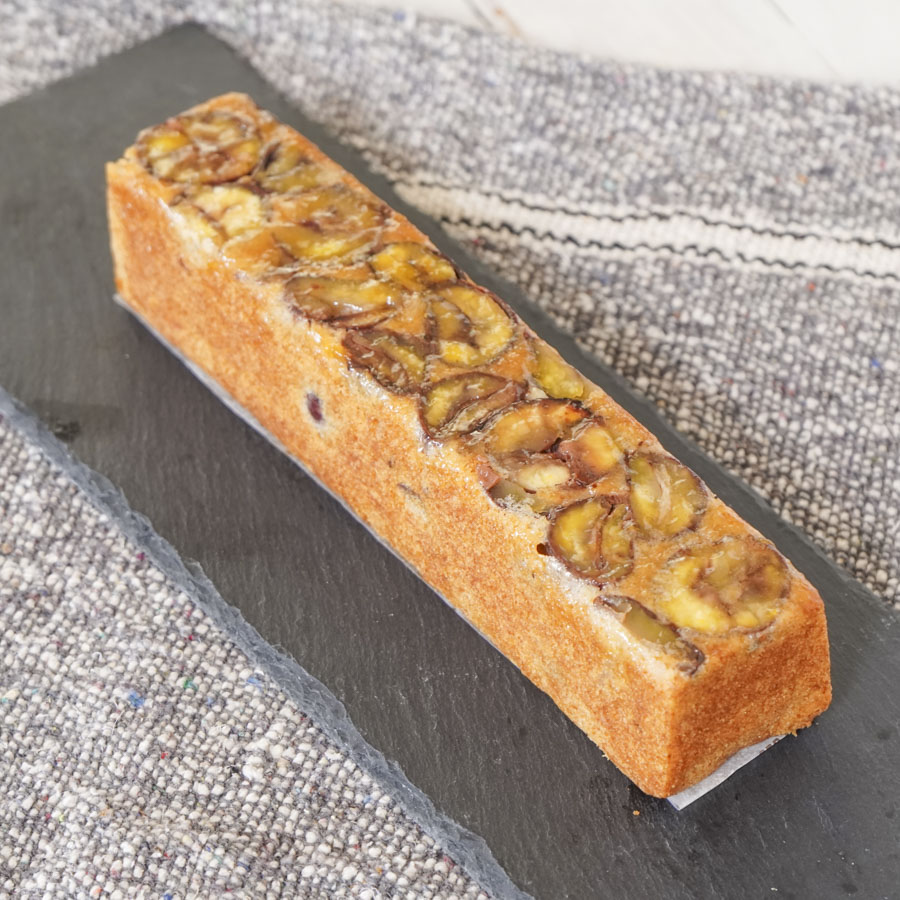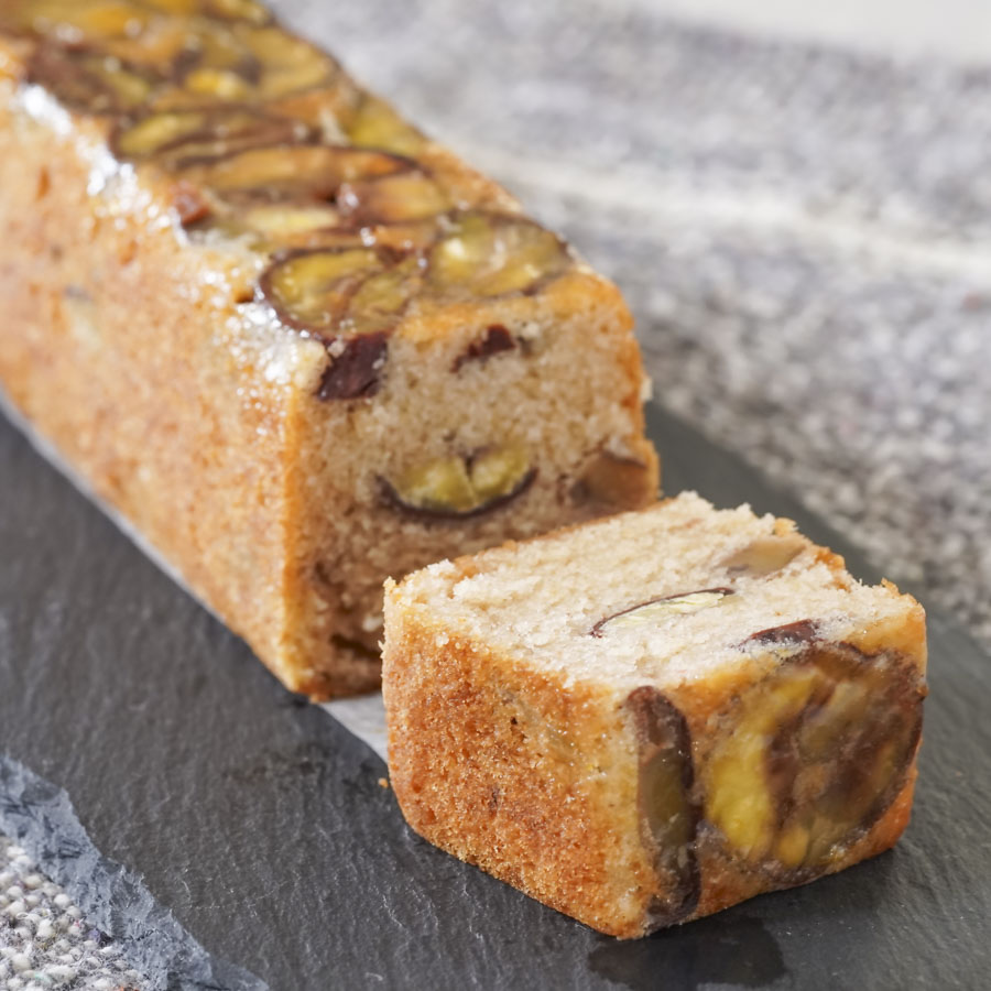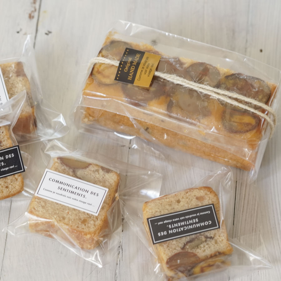 一口ごとに広がるマロンパウダーと渋皮煮のリッチな味わい。スリムパウンド型で焼くので、半分はプレゼントに半分はご自宅で楽しむこともできますよ!