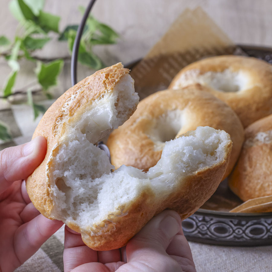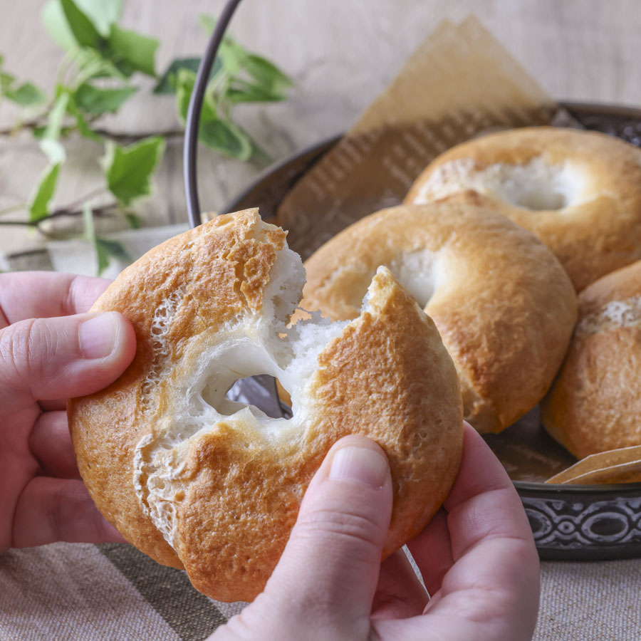 ベーグルは発酵時間が短く、発酵しきっていない生地を茹でて焼き上げるという独特の作り方によりむっちりとした食感に仕上がります。