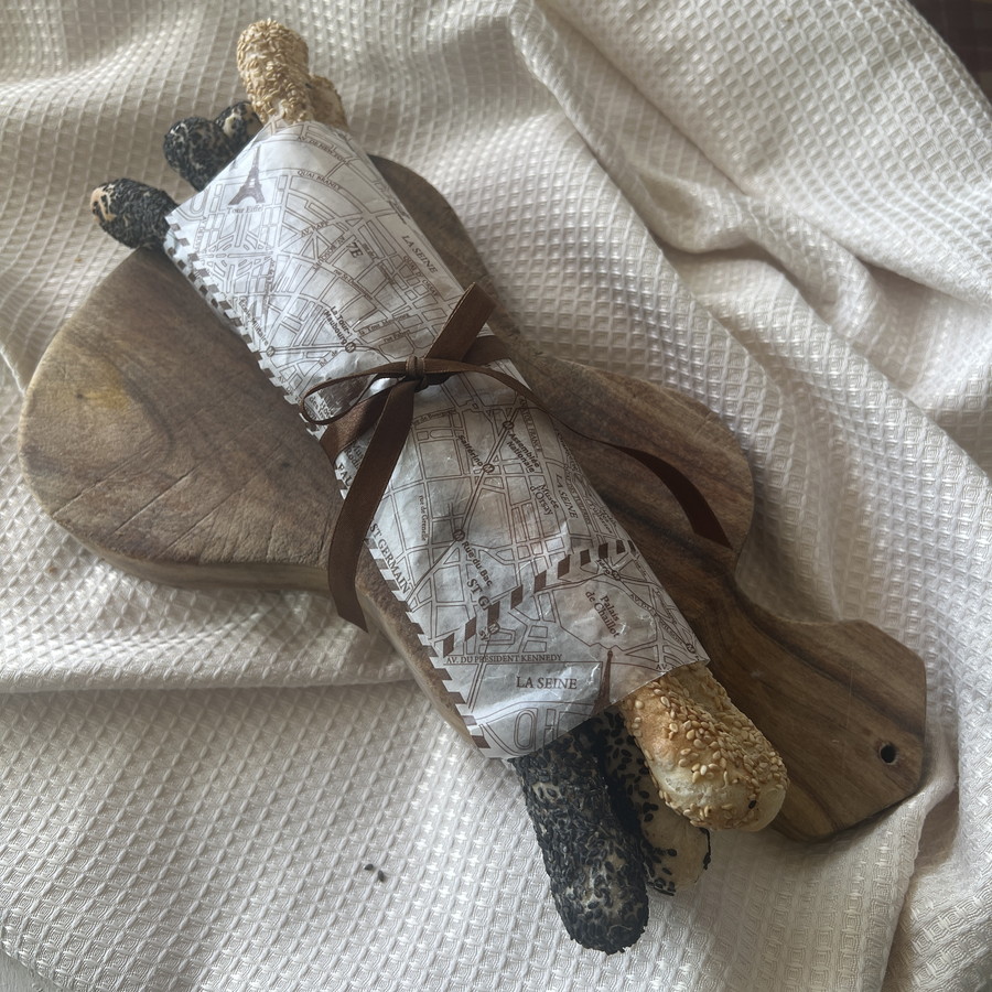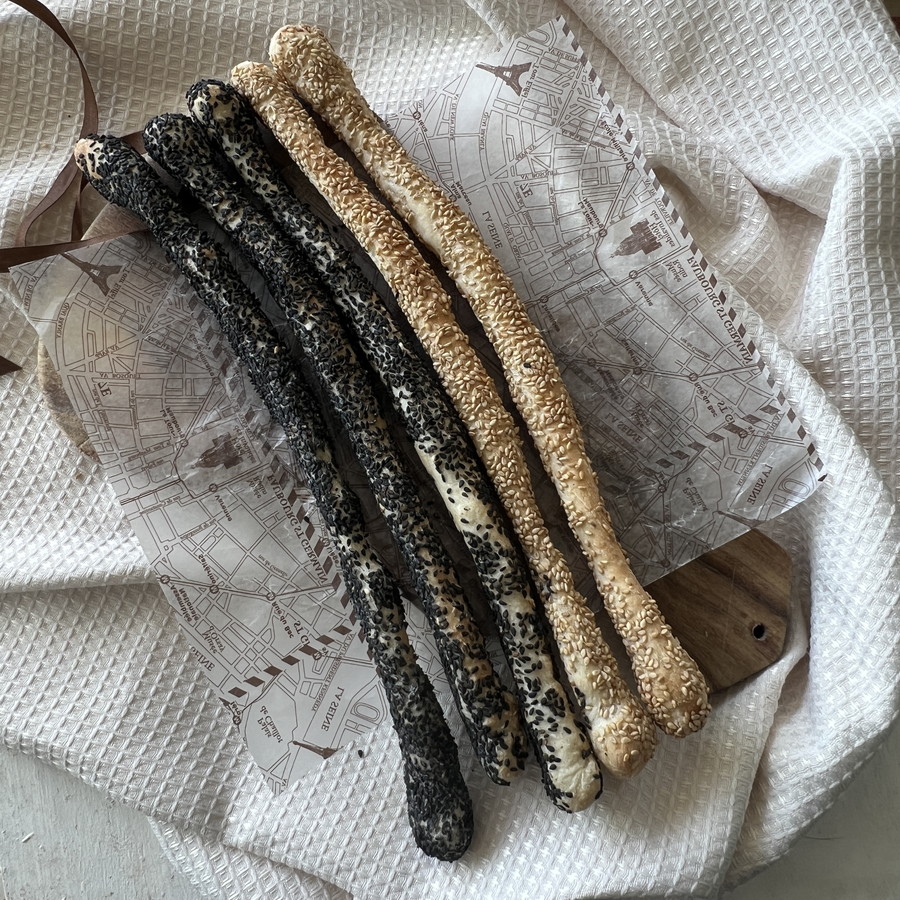 オーブンで焼き上げれば、香ばしい胡麻の風味が広がるカリッと軽い食感のグリッシーニが完成します。