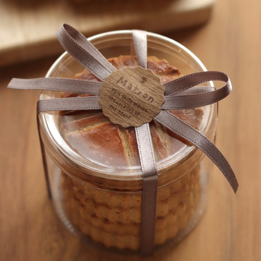 円筒ケースにガレットブルトンヌを4つ入れて、ふたをする。