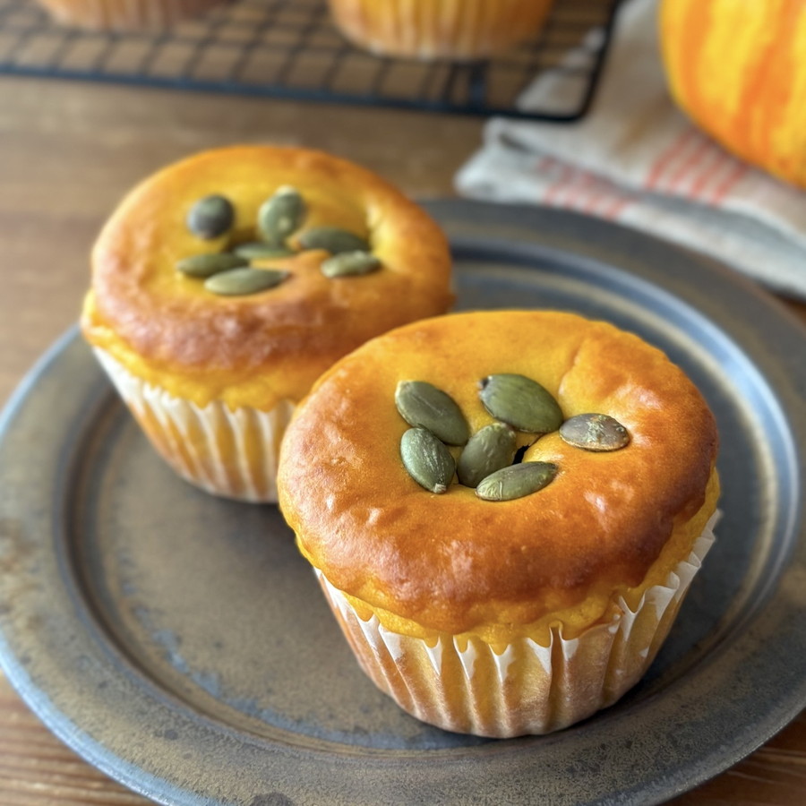 かぼちゃのやさしい甘みと、しっとり感を最大限に活かした、グルテンフリーのマフィンです。