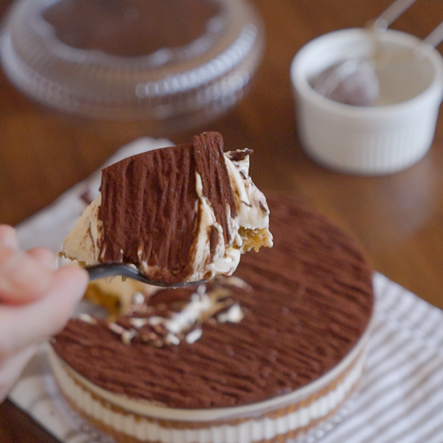 パリッと割れるチョコと濃厚なティラミスクリーム、コーヒーがしみ込んだスポンジが絶妙にマッチし、食べて楽しくなるスイーツです。
