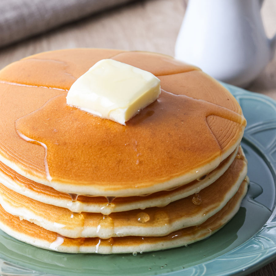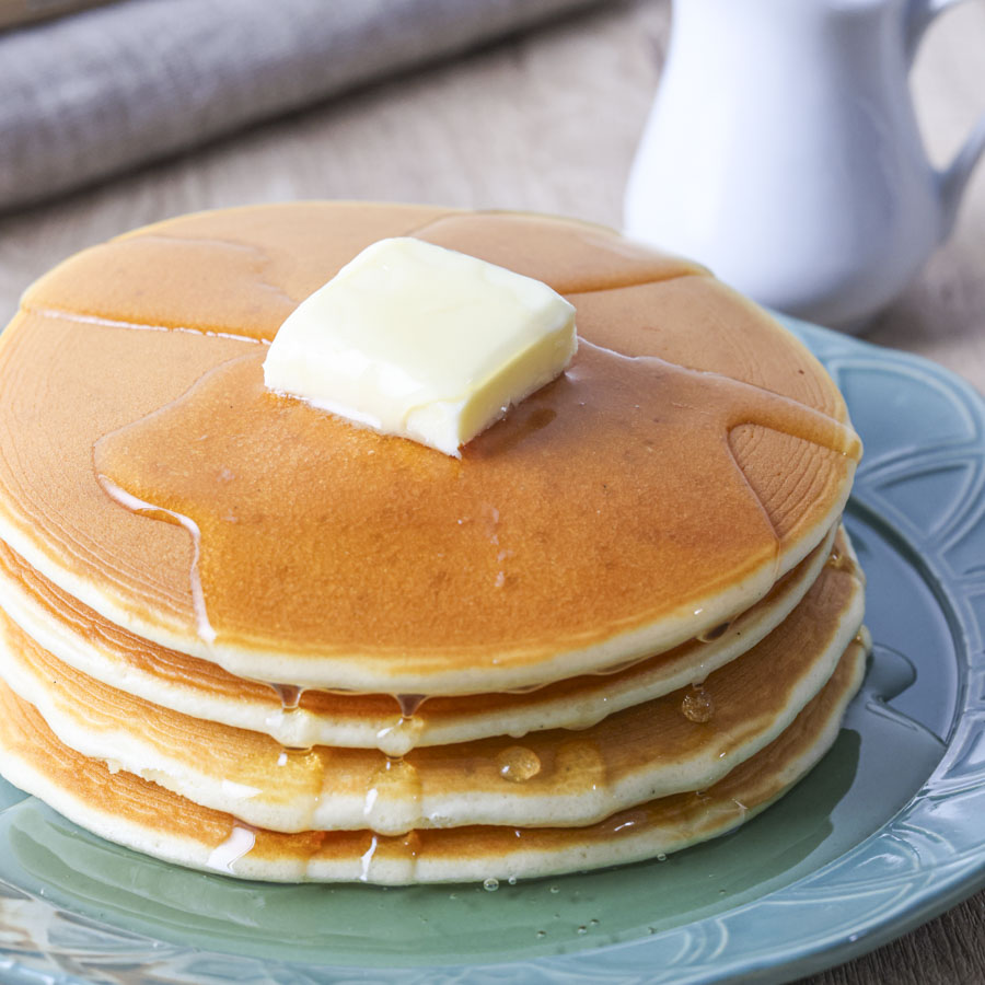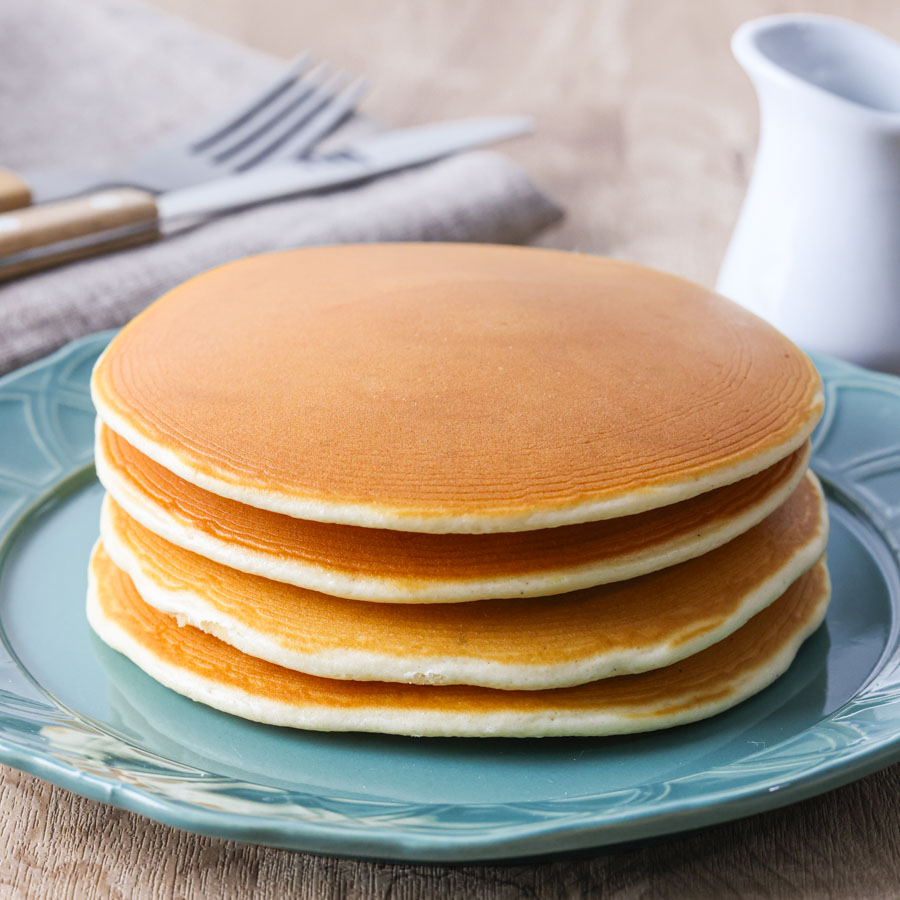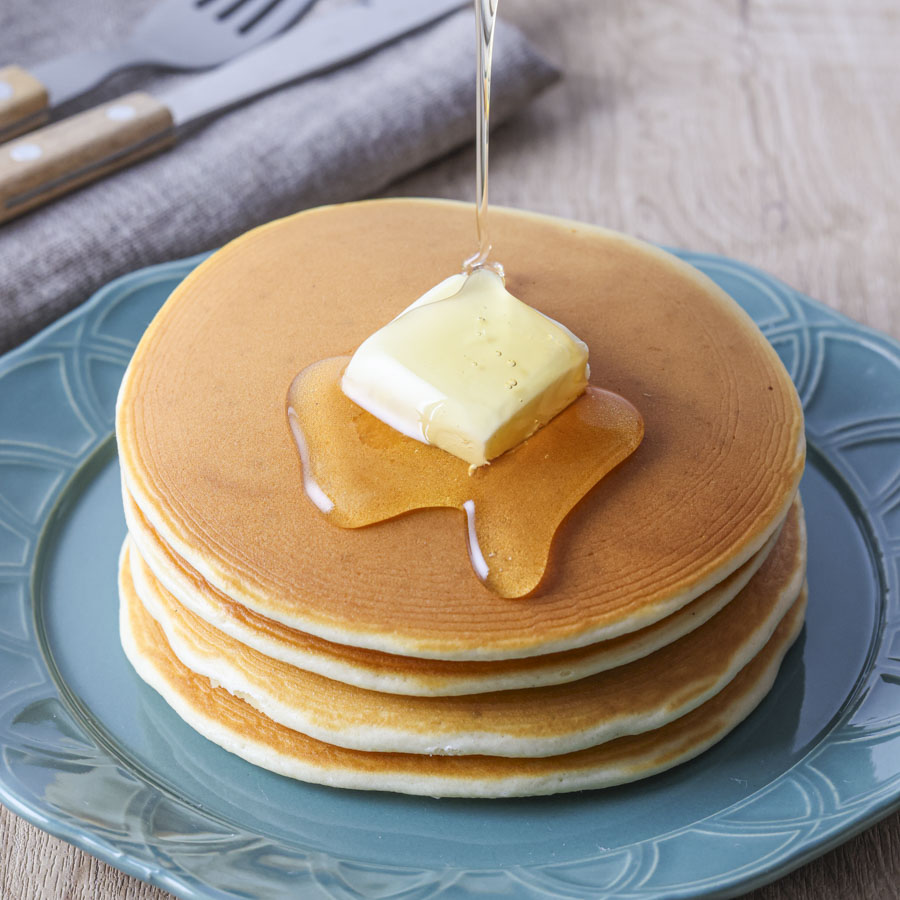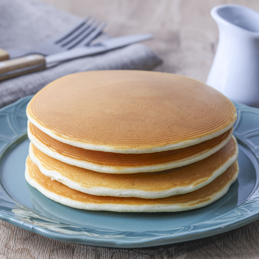 もっちりした食感とシンプルで優しい味わいの生地が特徴です。フルーツやメープルシロップ・生クリームなどをトッピングしてスイーツ系としてはもちろん、目玉焼きやソテーしたベーコンなどを添えてお食事として楽しむのもおススメです♪