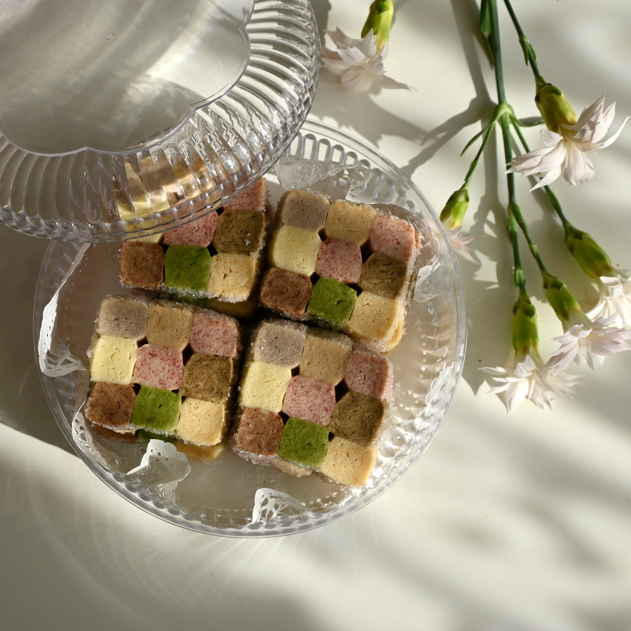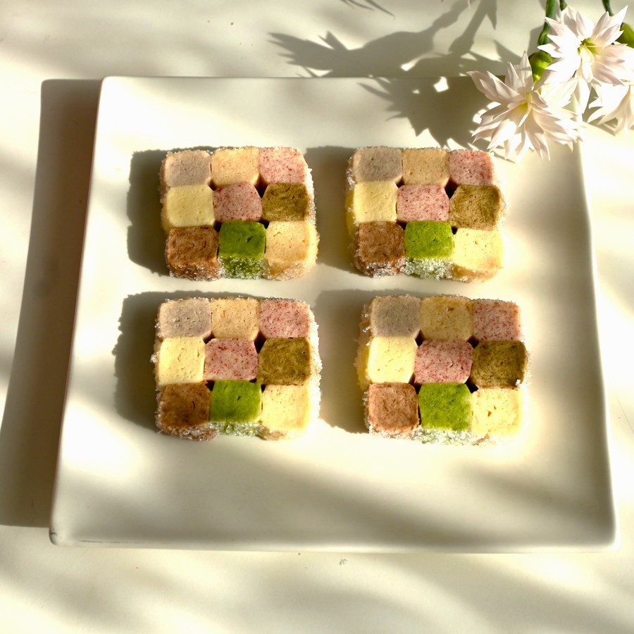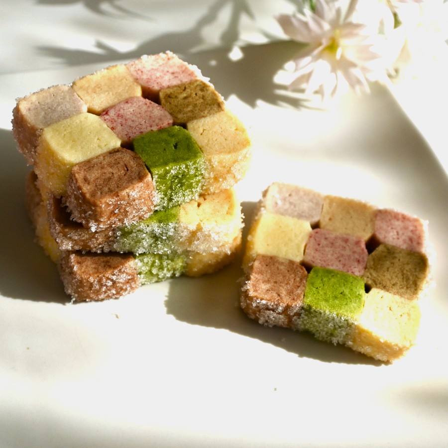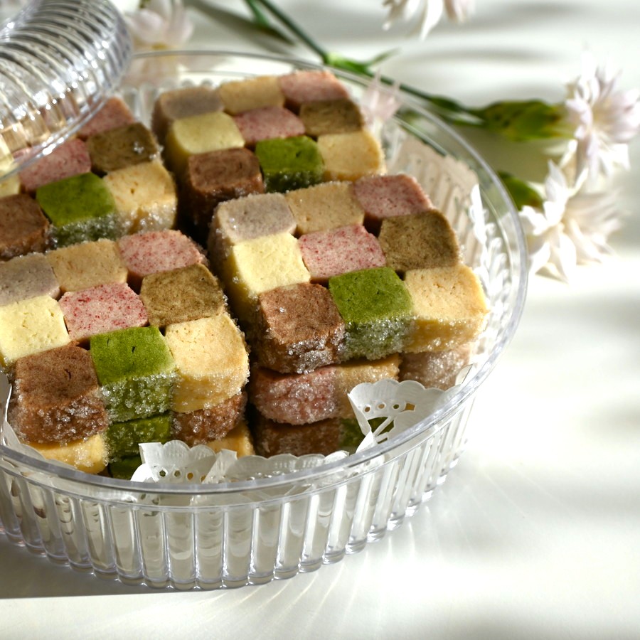 ボックスクッキーにしたら、チェッカーの可愛いクッキーの出来上がり。いろんな味をクッキーでお楽しみください。