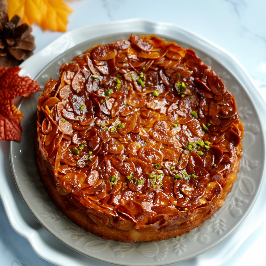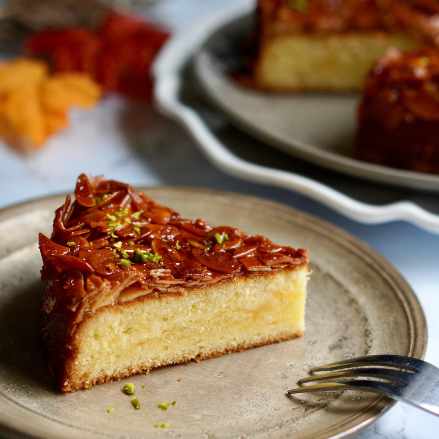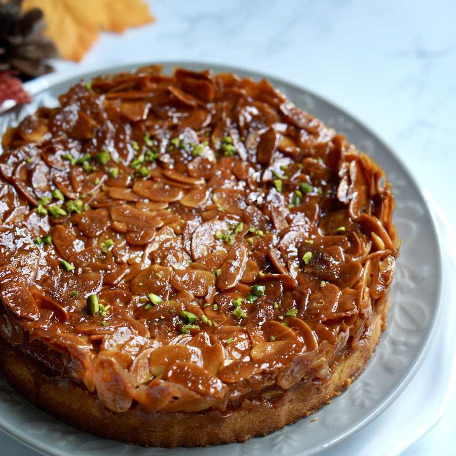 ジェノワーズ法で作るふんわりしっとりなバターケーキとカリカリのキャラメルアーモンドの組み合わせがとても美味しく、フロランタンのケーキバージョンのような味わいです。