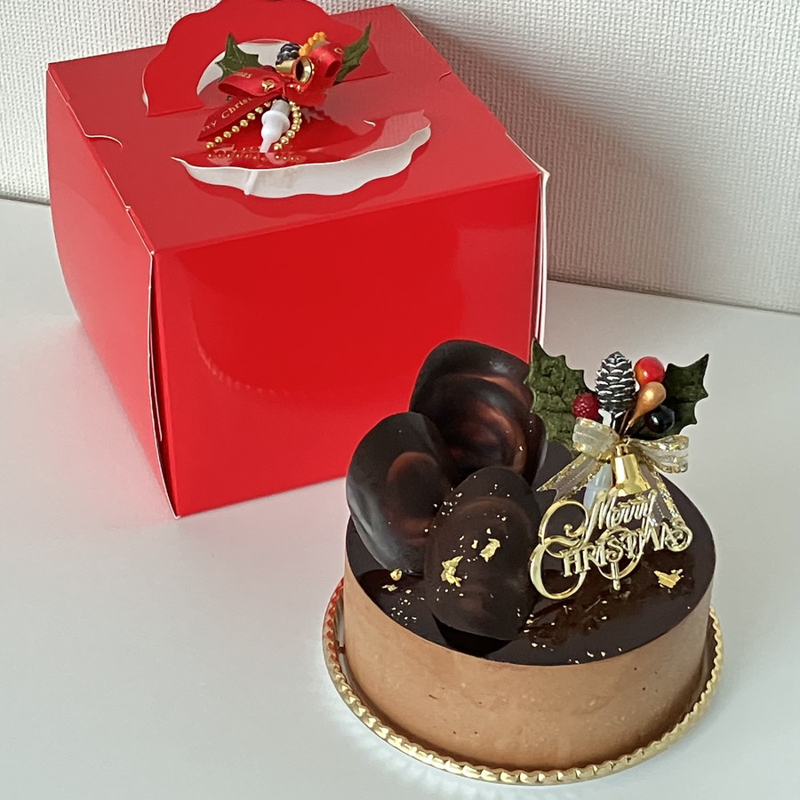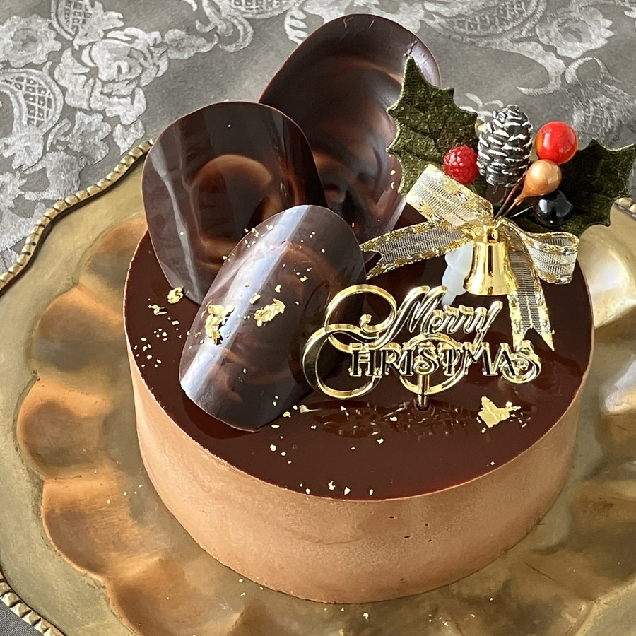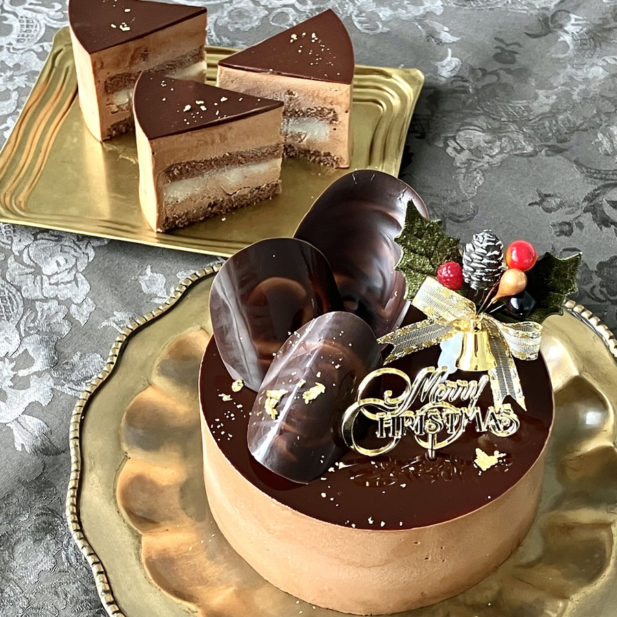 ほんのりビターなキャラメルとチョコレートのムースをクリスマスケーキ仕立てにしました。やさしい風味の洋梨をサンドし、つややかなグラサージュでデコレーション。ちょっと本格的なケーキも冷凍スポンジを使うことで手軽にチャレンジできます。