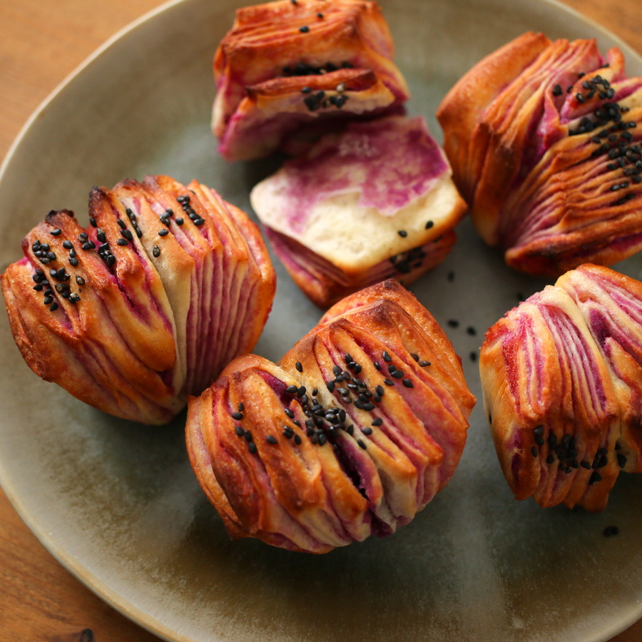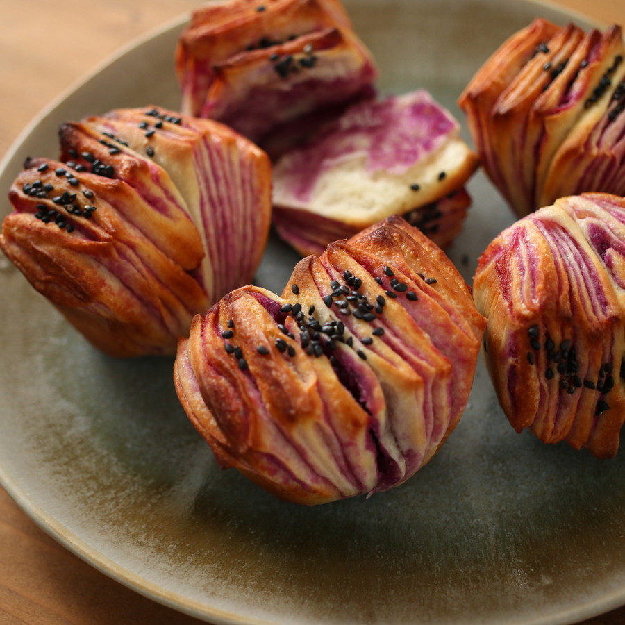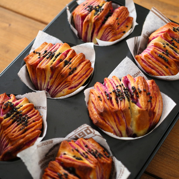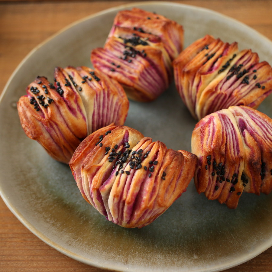 あんを層にしていくので、どこを食べてもあんが入っていて、あんの効果で生地のしっとりさが長持ちします。パンとお菓子の中間のような食感です。おやつに是非どうぞ!