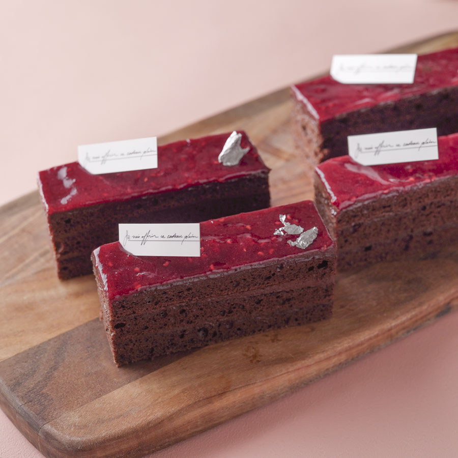 香り豊かな紅茶のシロップを染み込ませたビスキュイがしっとりした食感で、濃厚なガナッシュと甘酸っぱいフランボワーズのコンフィチュールが絶妙にマッチ。