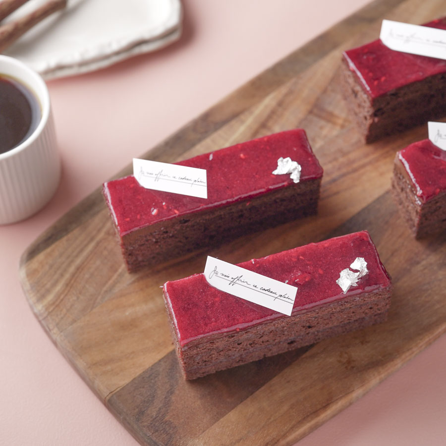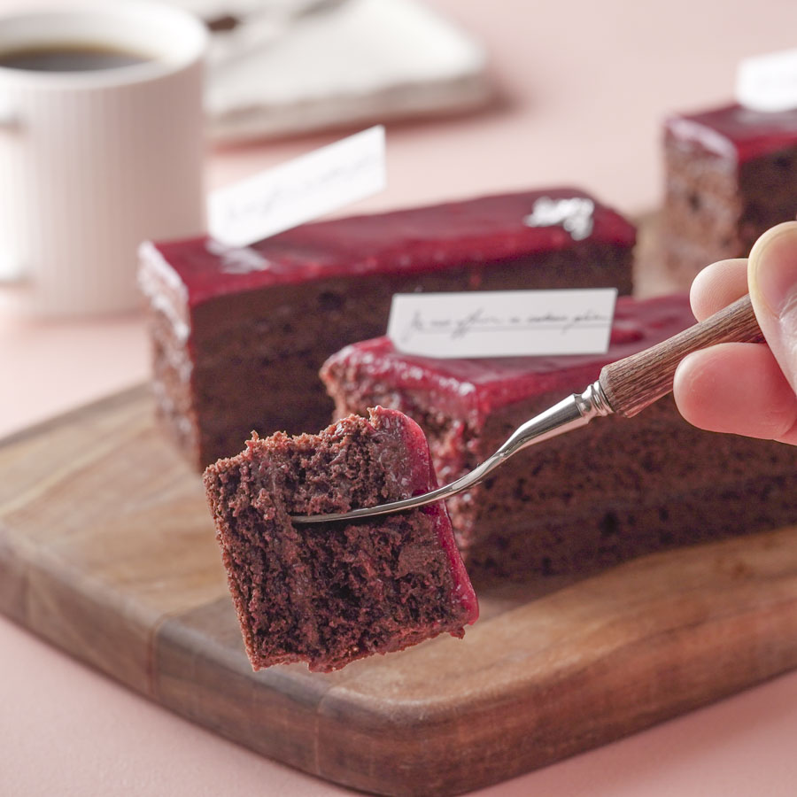 ラズベリーと相性の良い紅茶を組み合わせた濃厚な味わいのチョコレートケーキ。