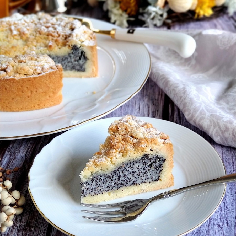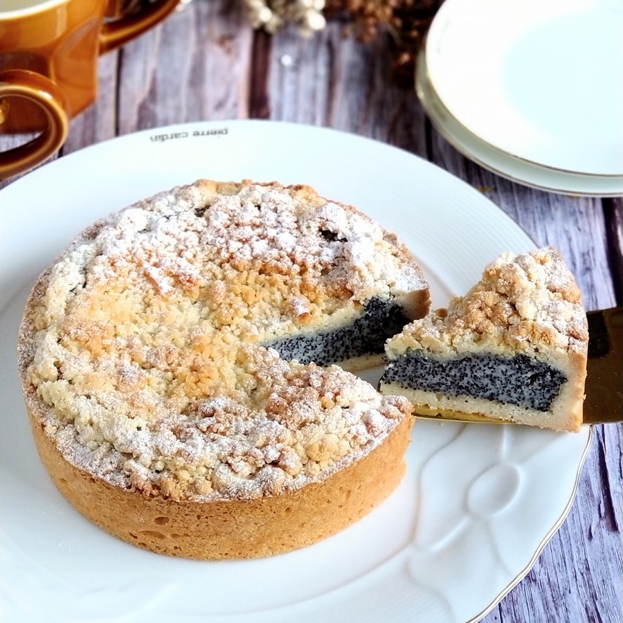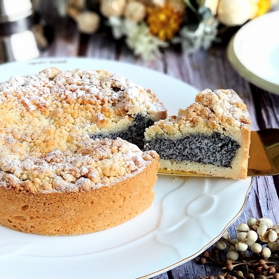 本来、フィリングにはクワルク(ドイツのフレッシュチーズ)を使用しますがクリームチーズで代用し、手軽に作れるレシピを考案しました。クリーミーなケシの実フィリングとプチプチ食感、サクサクのシュトロイゼルを味わってみてくださいね。