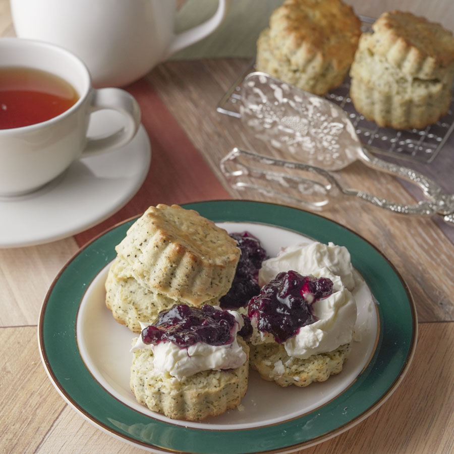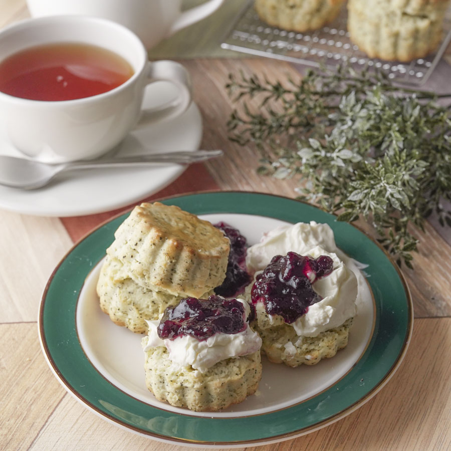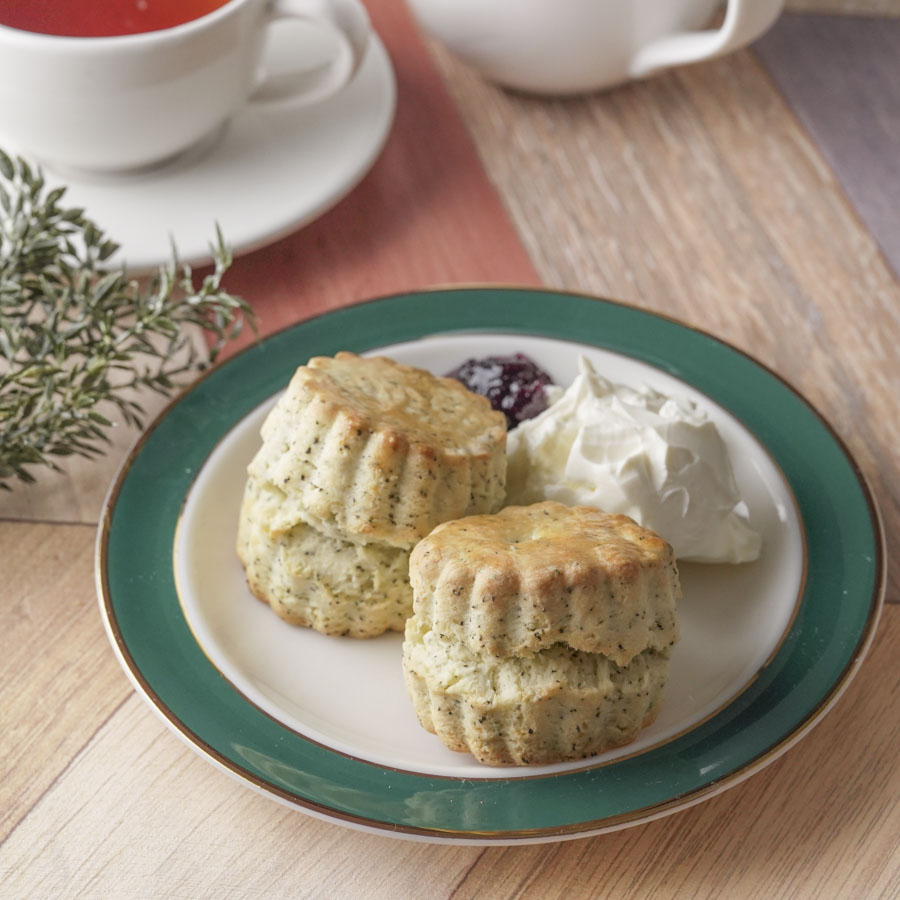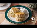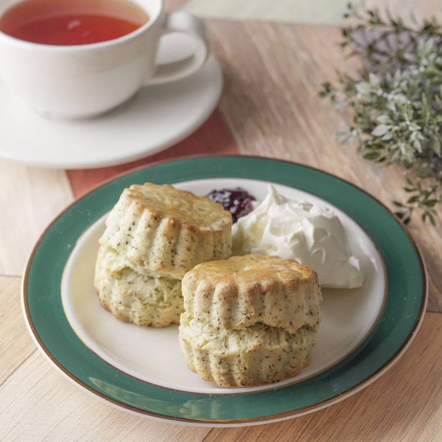 スコーンを割って、お好みでクロテッドクリームやジャムをのせてお召し上がりください。