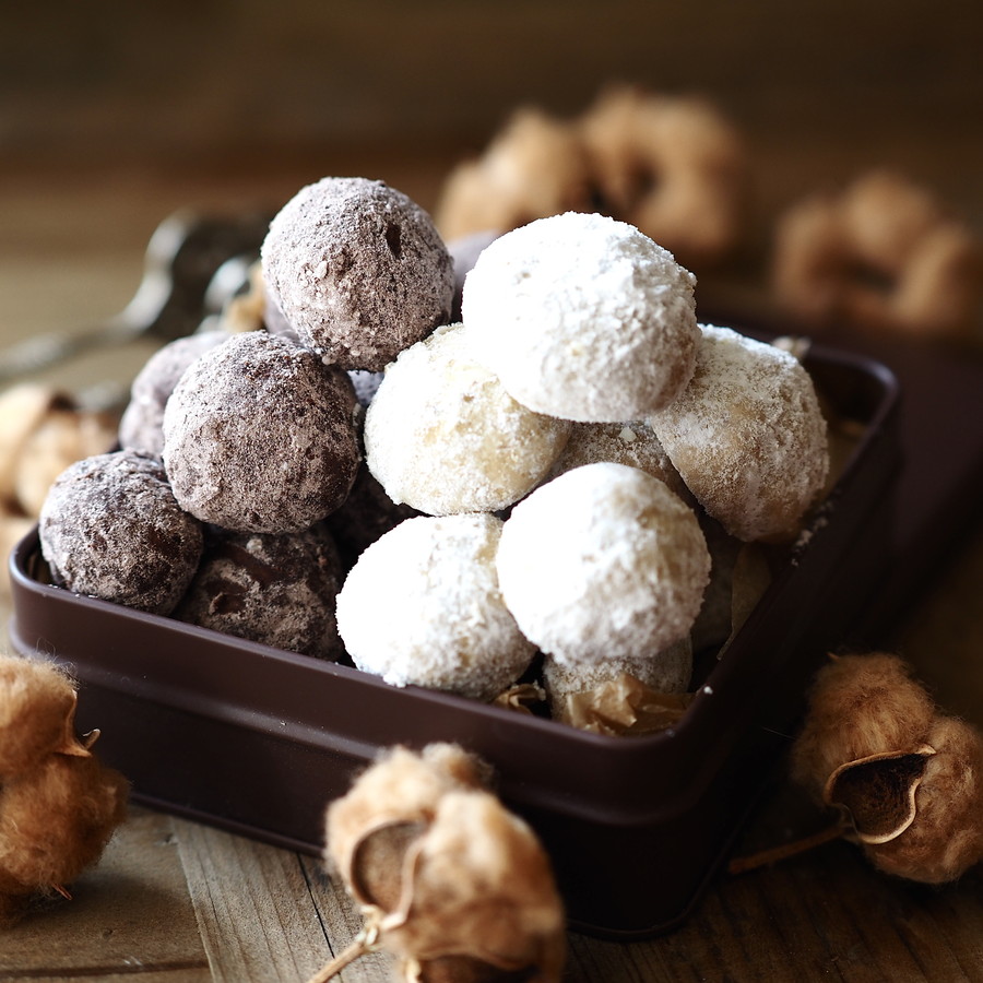 ビニール袋やボウルに仕上げ用の粉砂糖と10のポルボローネを入れ、優しくふりふりして粉砂糖をコーティングする。