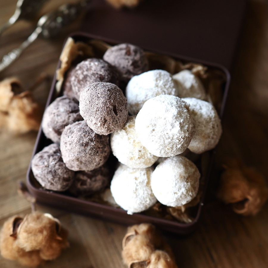 袋に仕上げ用の粉砂糖とココアを入れて混ぜてからポルボローネを入れコーティングする。