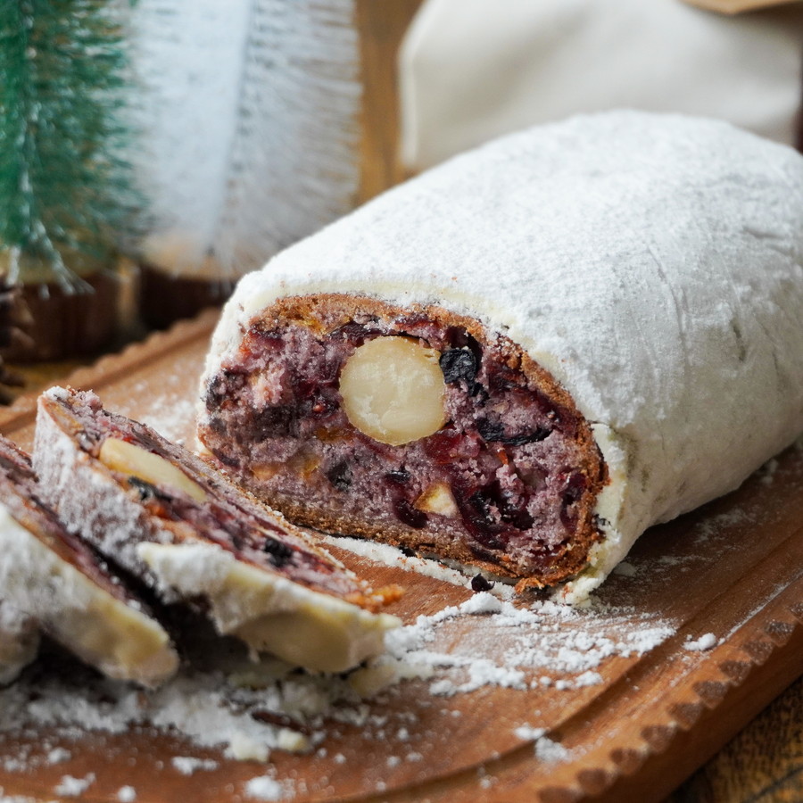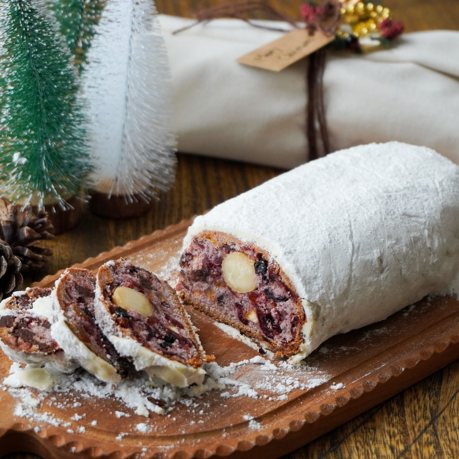 カシスの深い色合いと甘酸っぱさが広がるシュトーレン。