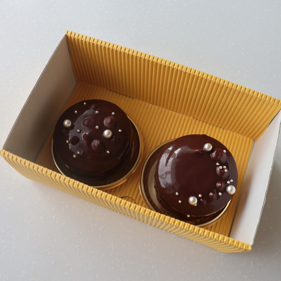 箱を組み立てて中にミニサイズのショコラムースをトレーごと入れる。