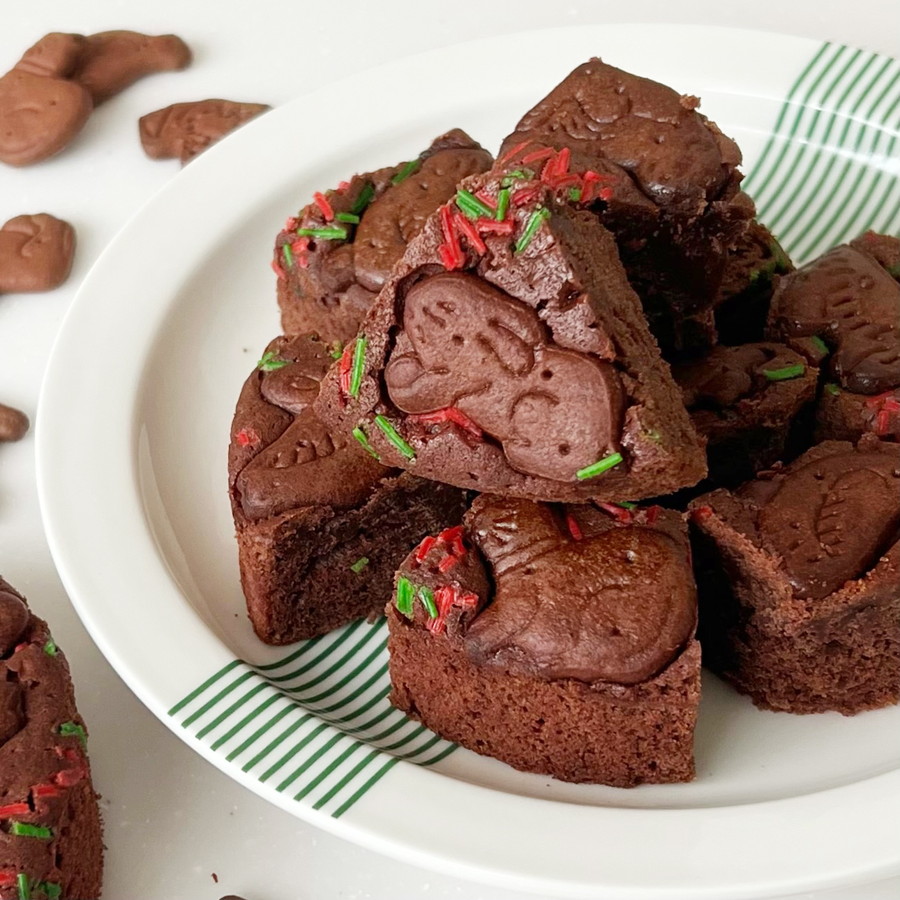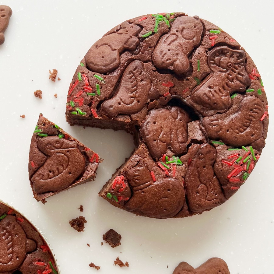 レトロな動物ビスケットとクリスマスカラーのシュガースプレーをトッピング!