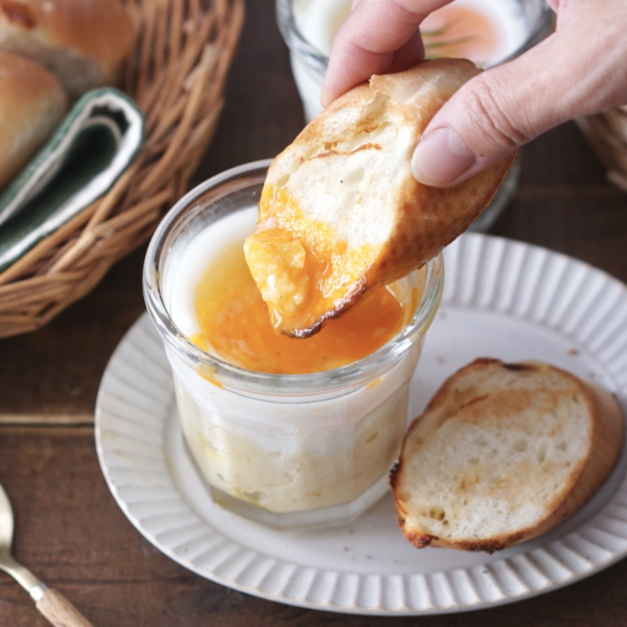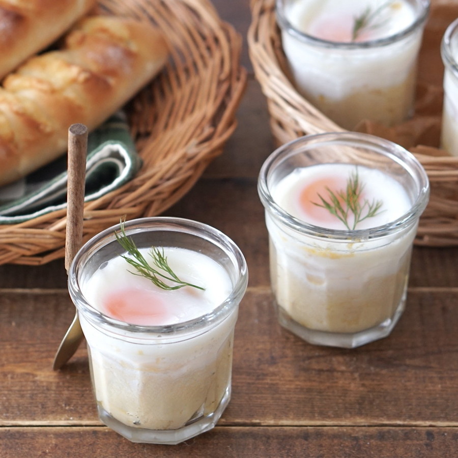 エッグスラットとは、ロサンゼルス発祥のポテト料理。食べやすいようにガラス瓶にマッシュポテトと卵を詰め込み、湯煎して仕上げます。