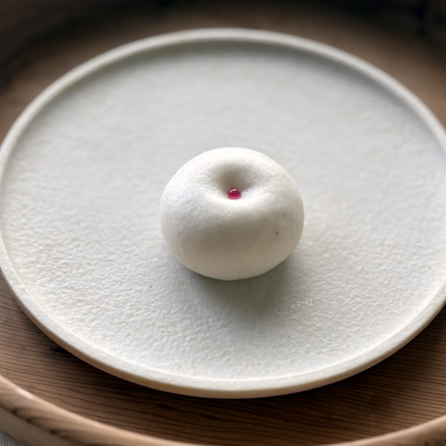 生地を少し丸めて、表面をきれいにしてから1の中餡を包む。
