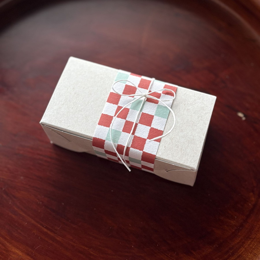 新年らしい掛け紙、紙紐で包み、新年のご挨拶にも。