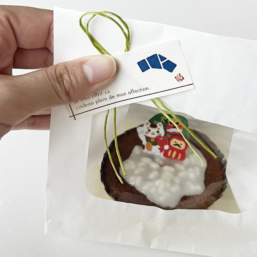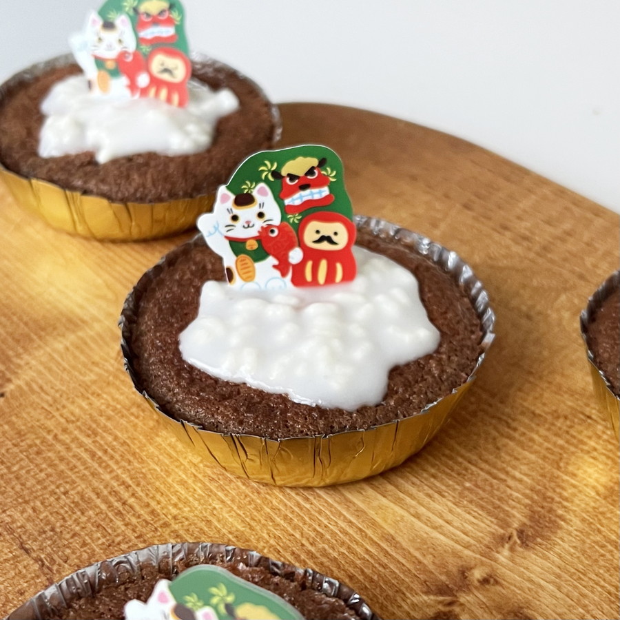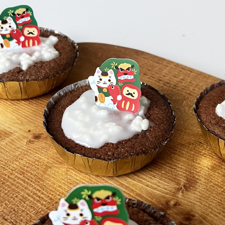 粗熱が取れたら、甘酒アイシングをかけてピックを飾って乾かし完成。