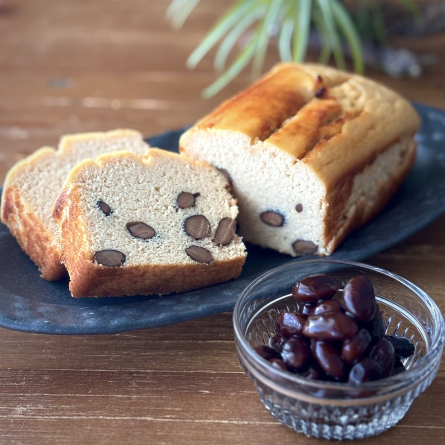 オイル不使用で低脂質・おからで糖質控えめ、黒豆の和風パウンドケーキです。