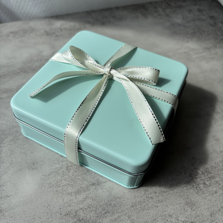 クッキー缶にドライマットを入れ、しっかり冷めたメレンゲクッキーを詰めての蓋をしめる。