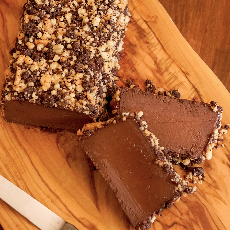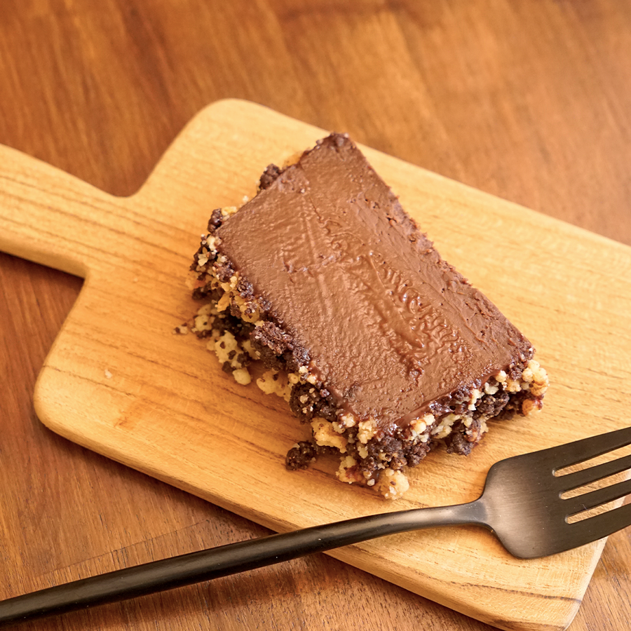 素朴で濃厚なテリーヌに塩気のきいた生地とココア生地のクランブルクッキーの組み合わせが絶妙にマッチしたお菓子になります。