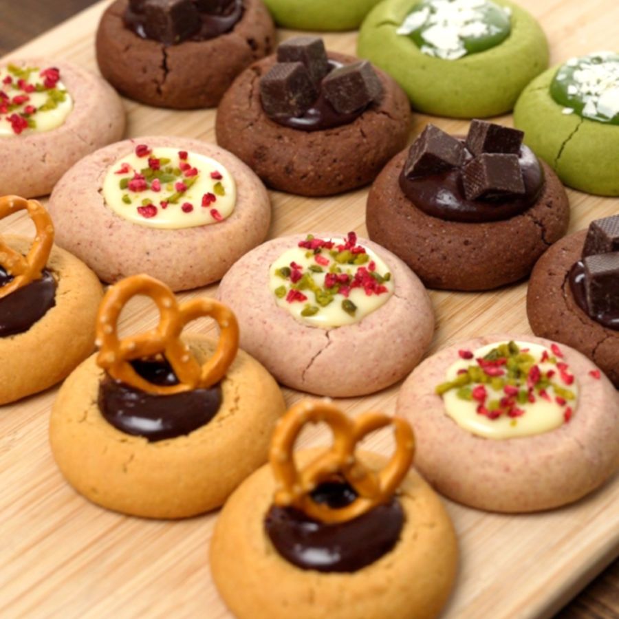 崩れないように注意しながらクッキーが温かいうちに中心をさらにくぼませる。