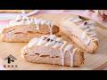 ペストリーボードに移してめん棒で少し伸ばし、半分にカットして重ねる。