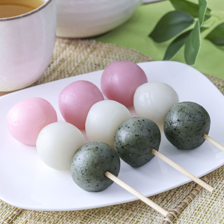 3色団子とは、ピンク・白・緑の3色が並んだ串団子のことで春の季節に特に親しまれ、花見団子とも呼ばれます。
