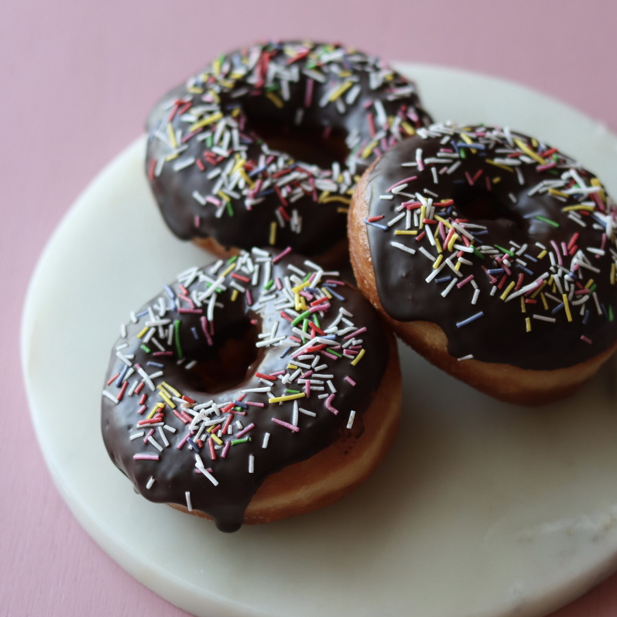 シュガースプレーを使ってカラフルなスプリンクルドーナツを作りましょう!