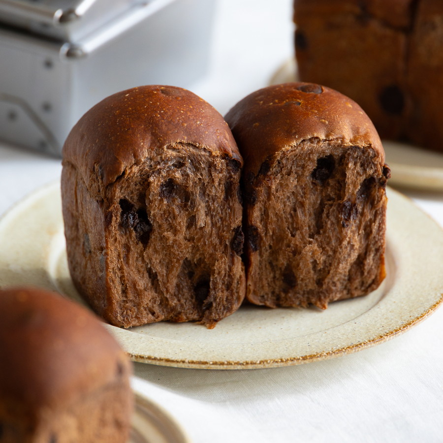 ふんわりとしたココア生地に、甘いチョコチップがアクセントのミニ食パン。