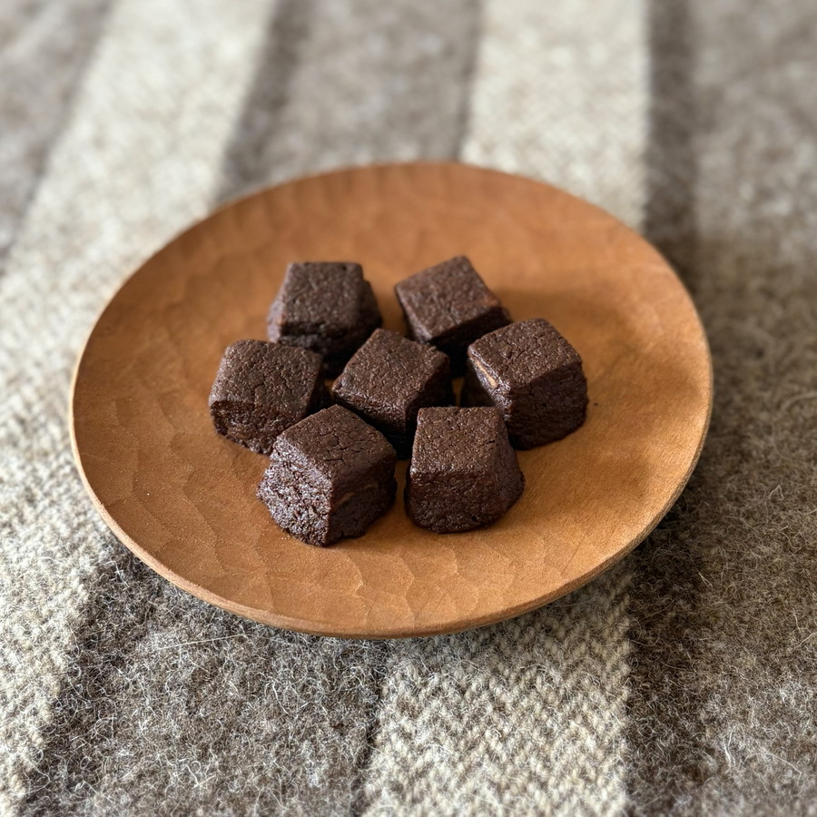 吟醸酒の酒粕の、ほどよい酸味が効いた、さくさく感とややしっとりもある焼きチョコです。