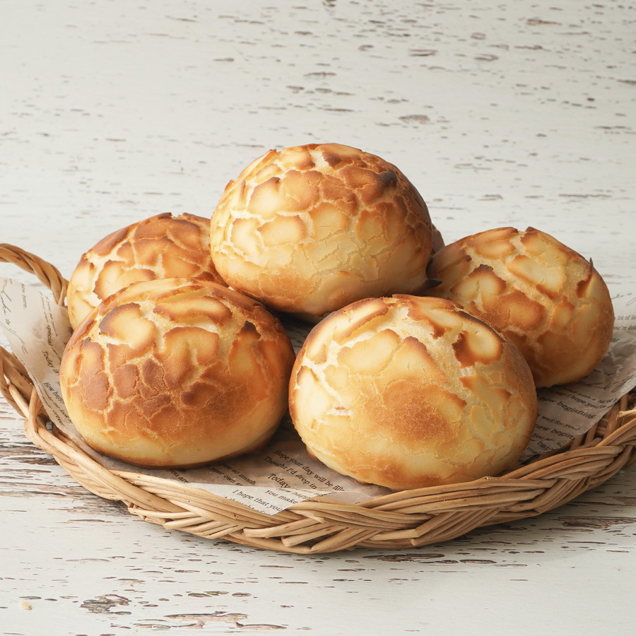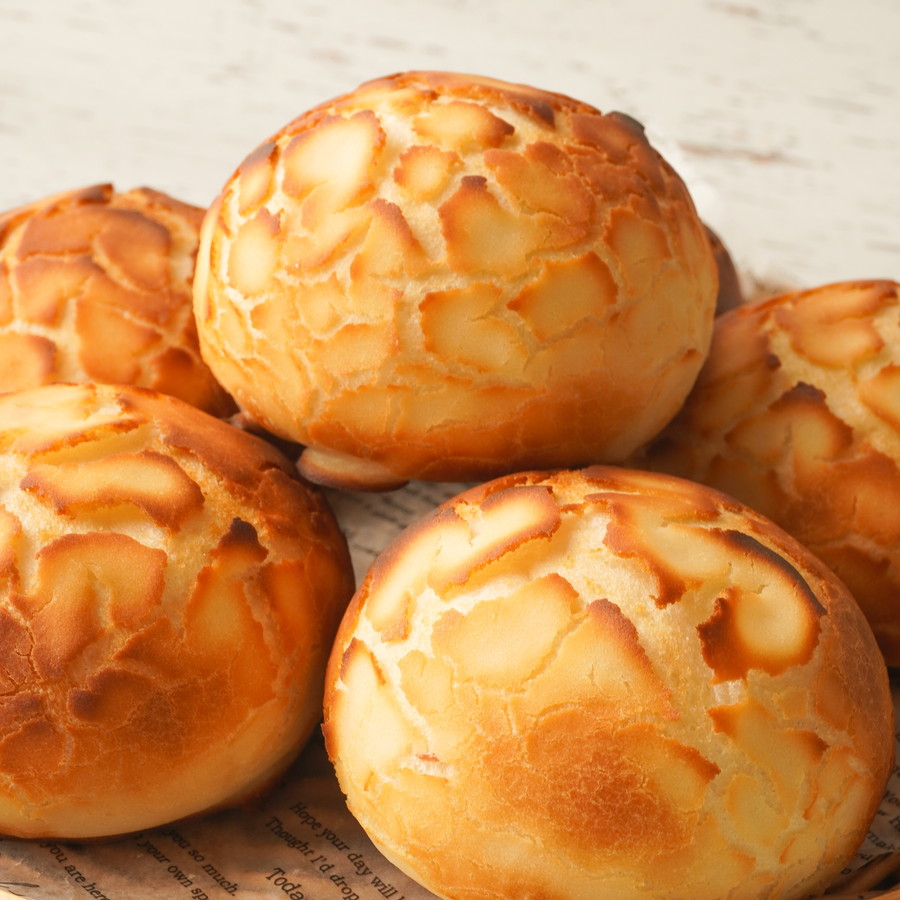 ダッチブレッドとは、米粉で作った上掛け生地をパン生地に塗って焼き上げ、表面のカリッとした食感と割れた模様が食欲をそそる食事パンです。