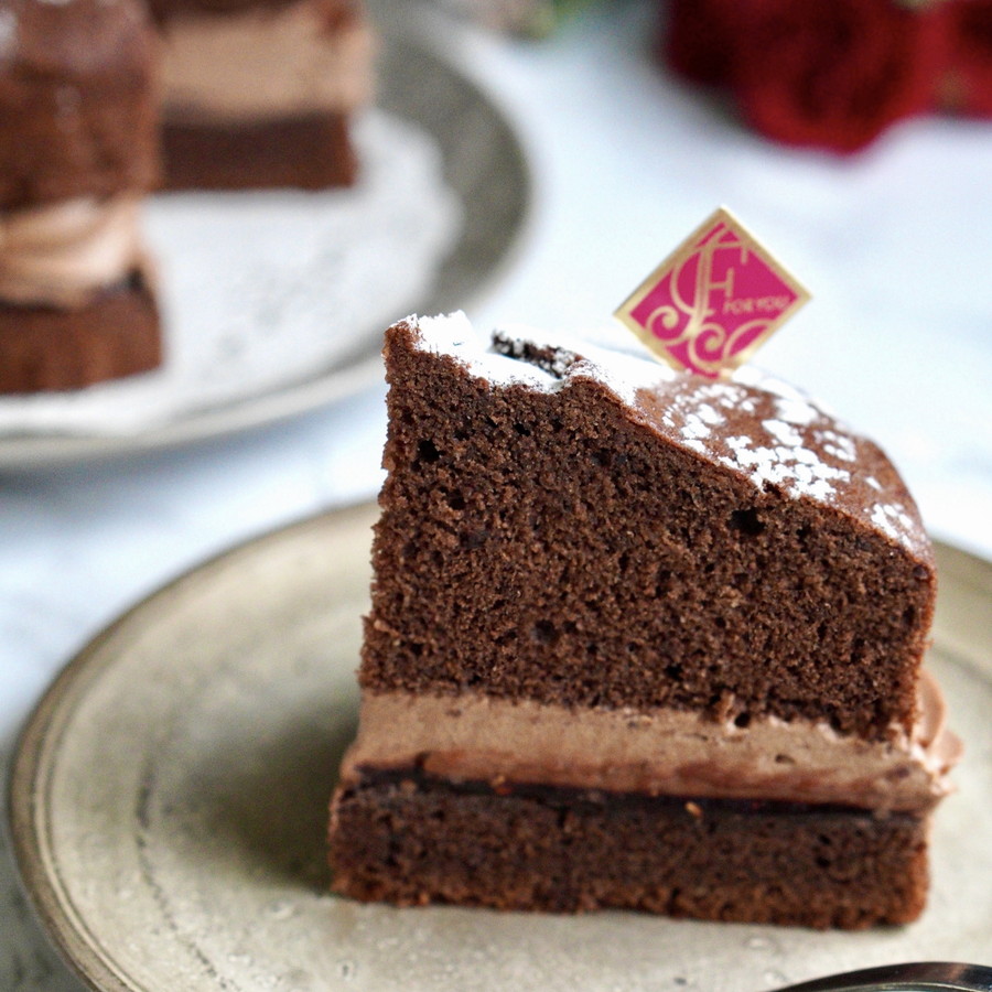 ココアパウダーたっぷりのバターケーキ生地に、ラズベリージャムと濃厚なガナッシュモンテ(生チョコクリーム)をサンドしました。