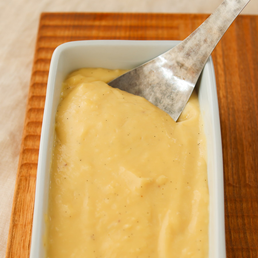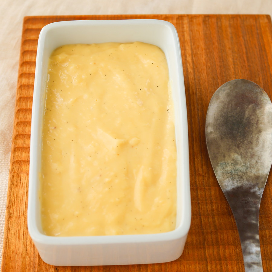 卵黄ではなく全卵で、そして甘みは本みりんだけの、カスタードクリームです。