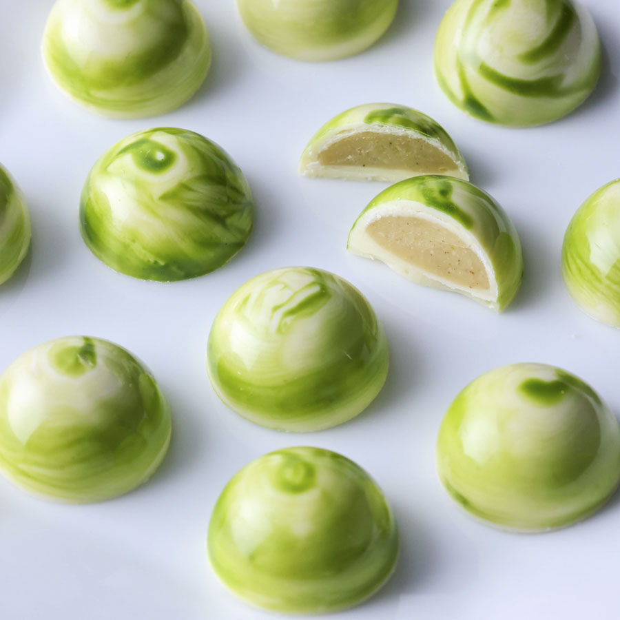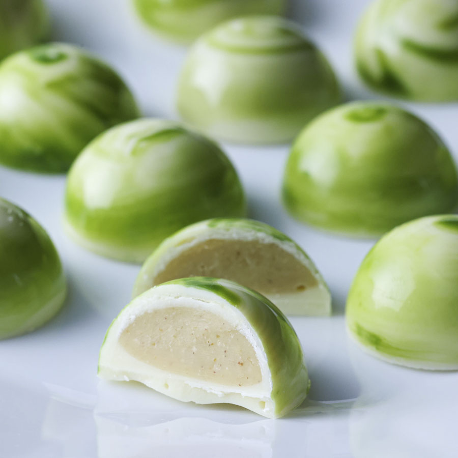 まるでショコラティエが作ったかのようなピスタチオのボンボンショコラ。