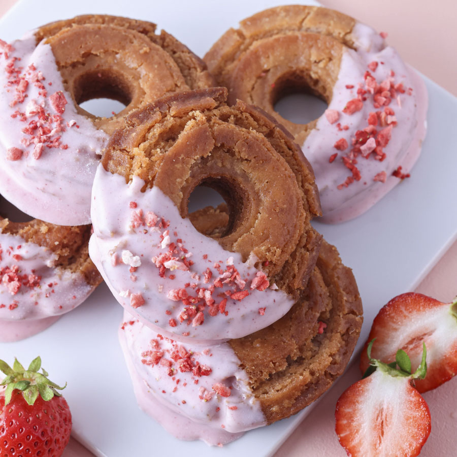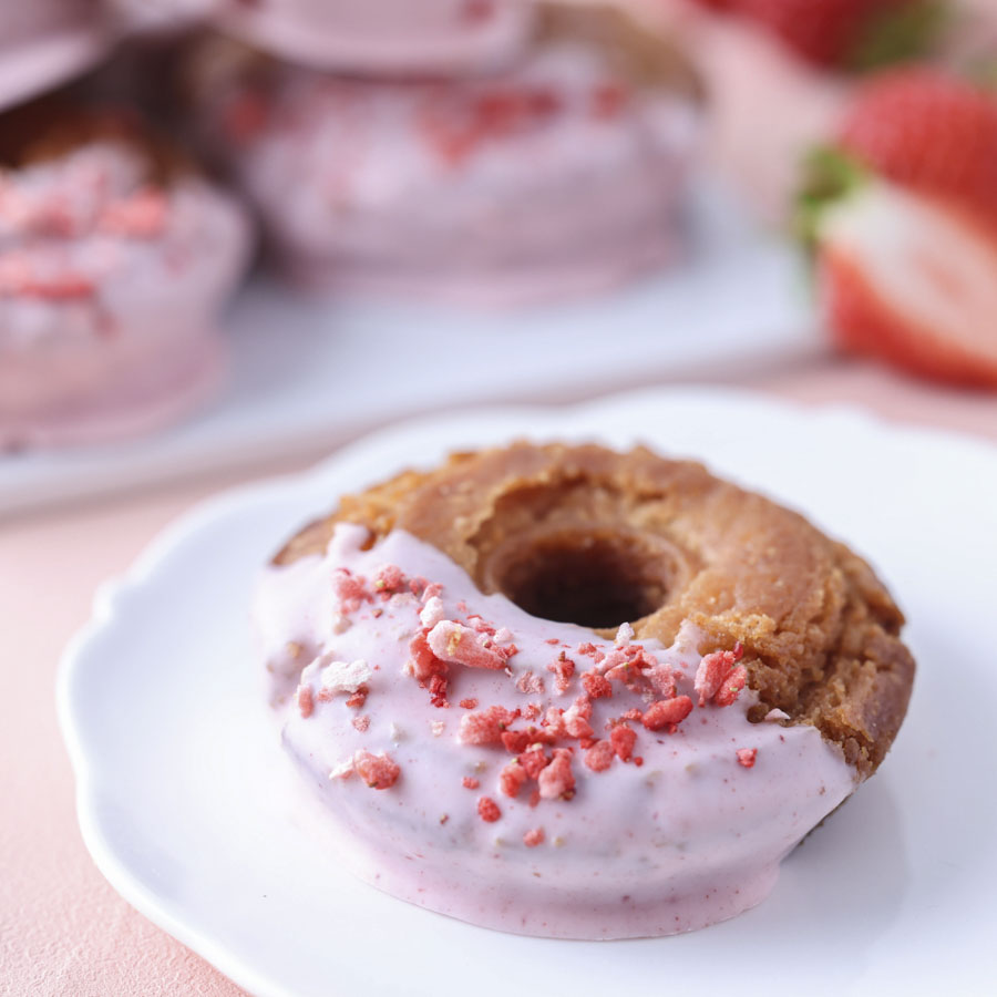 このレシピは生地にいちごのフリーズドライパウダーを練り込み、ストロベリーチョコレートでコーティングしました。見た目にも可愛らしく甘酸っぱいいちごの風味をしっかりと感じられる一品です。
