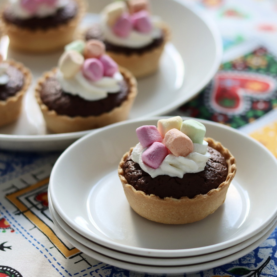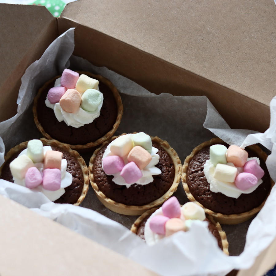焼成済のパイタルトにブラウニーを流して焼くだけ!