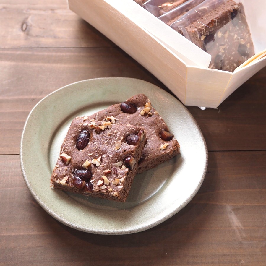 松風というと、味噌味の生地に胡麻や芥子の実などを散らして作る「味噌松風」が有名ですが、それを少し洋風にココア味にアレンジしました。
