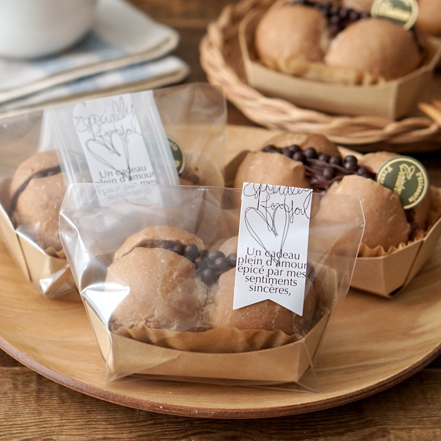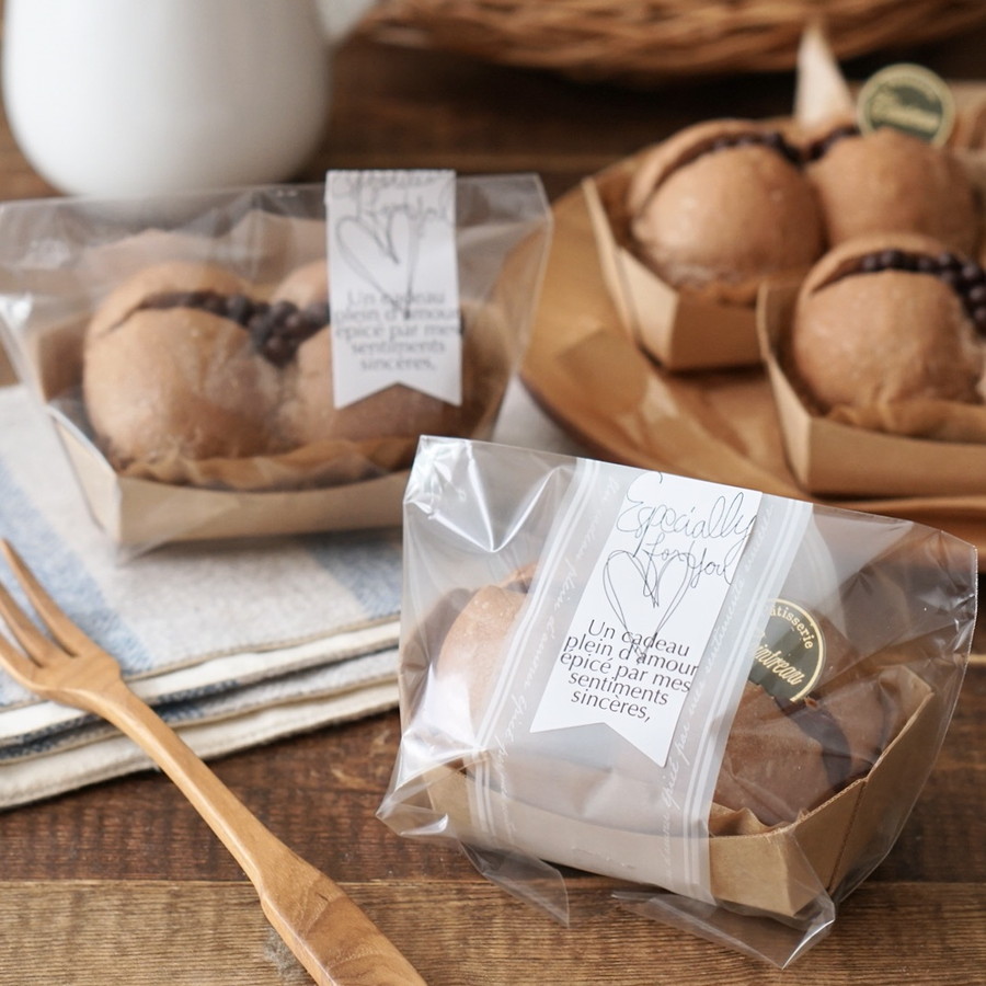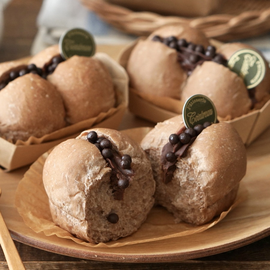 チョコスプレーやアラザン、カカオニブなどを代わりにトッピングしても良いですね。バレンタインにもおすすめのパンです。