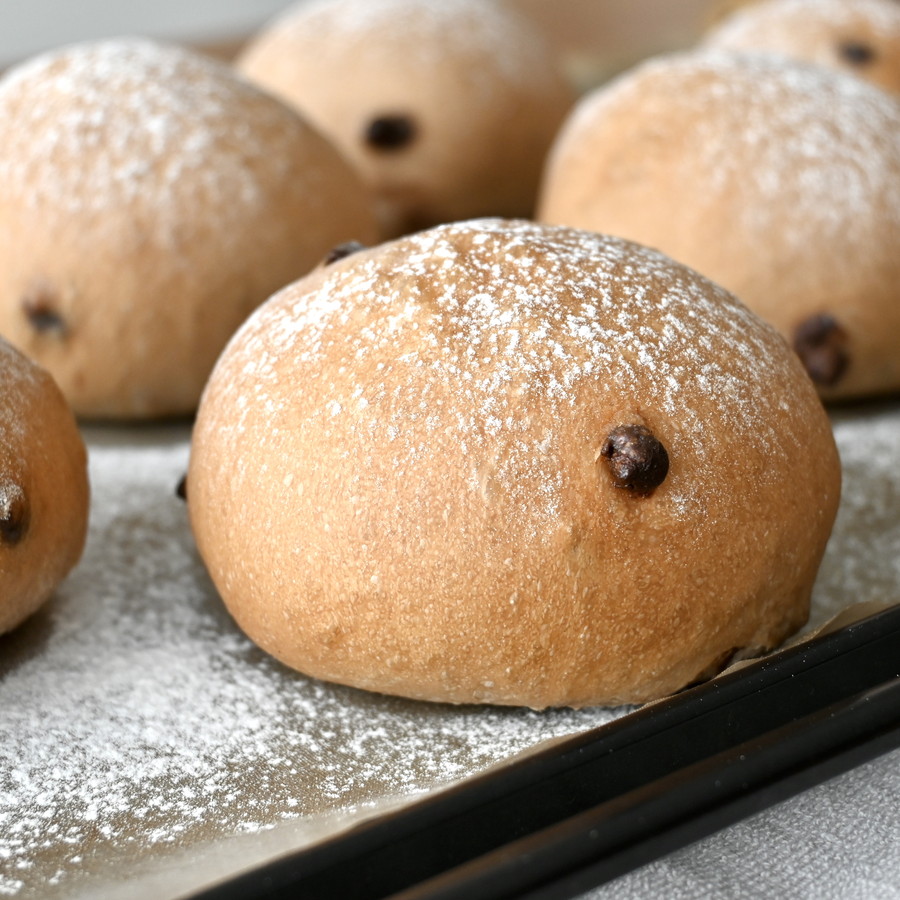 均等な間隔となるよう天板に並べて、ラップと濡れ布巾を被せて、生地が1.5倍程度にぷっくりと膨らむまで二次発酵させる。