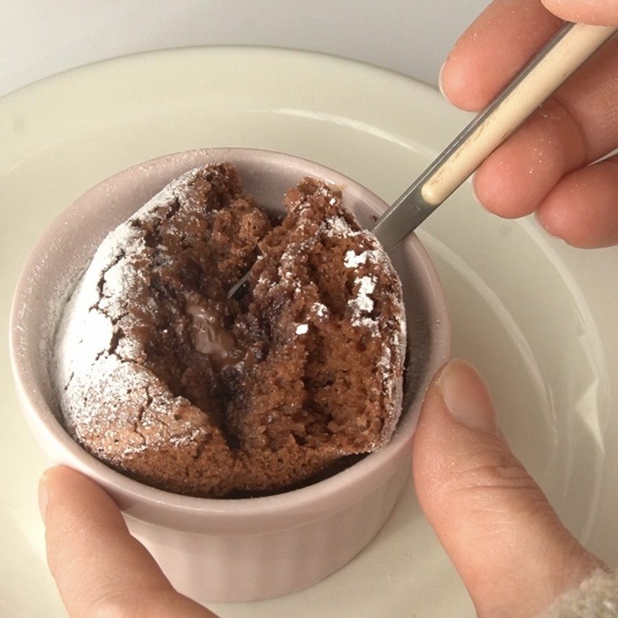 一般的なフォンダンショコラは生クリームとチョコレートと卵で作りますが、今回はお腹に優しいグルテンフリーでオイル不使用で作りました。