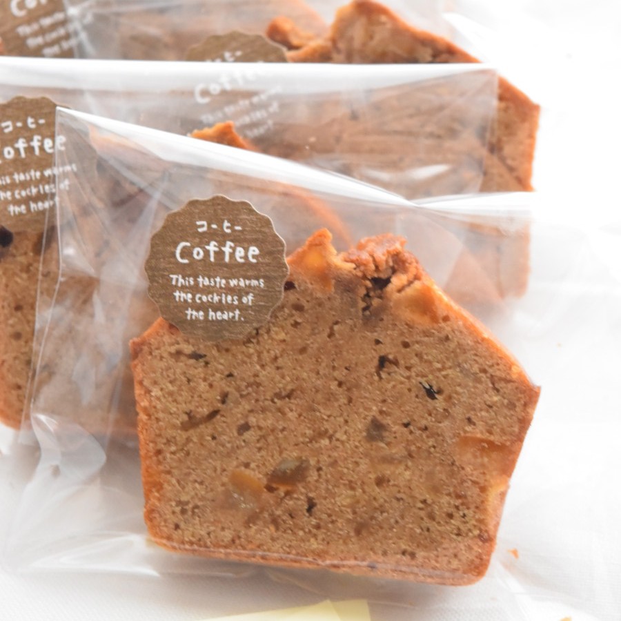 ほんのり香るコーヒー生地に、爽やかな甘みのオレンジピールを散りばめたパウンドケーキです。