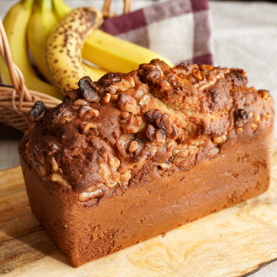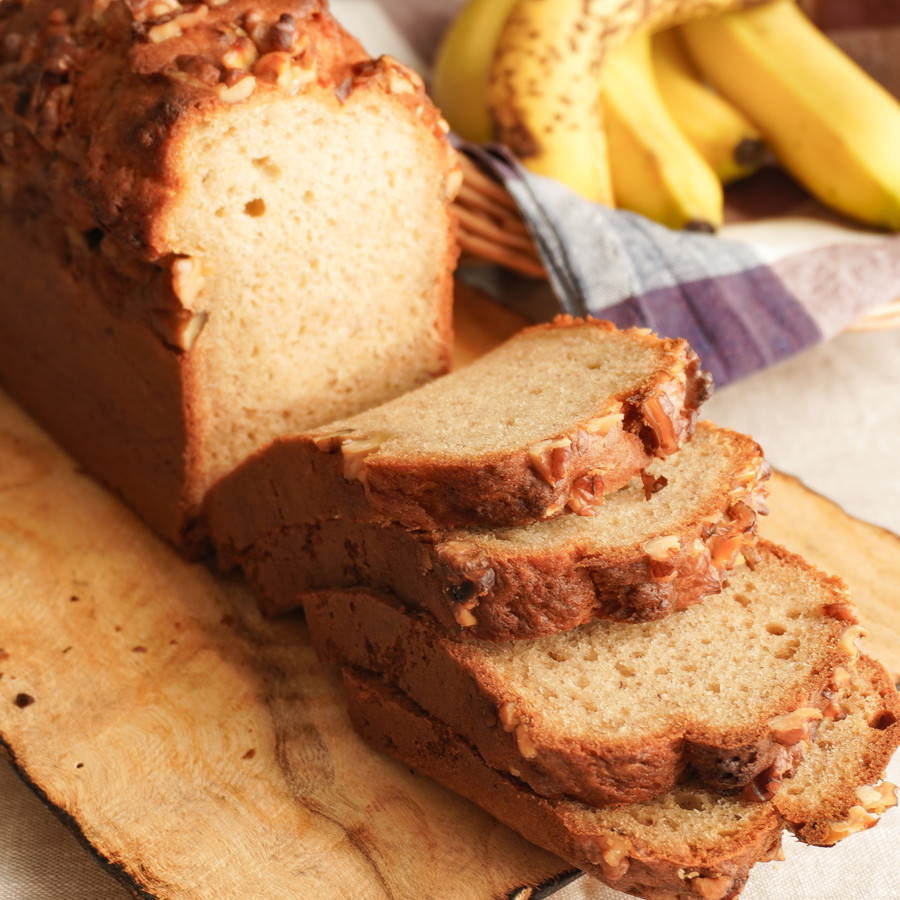 バナナのやさしい甘みを活かした、ふんわり食感のバナナブレッド。