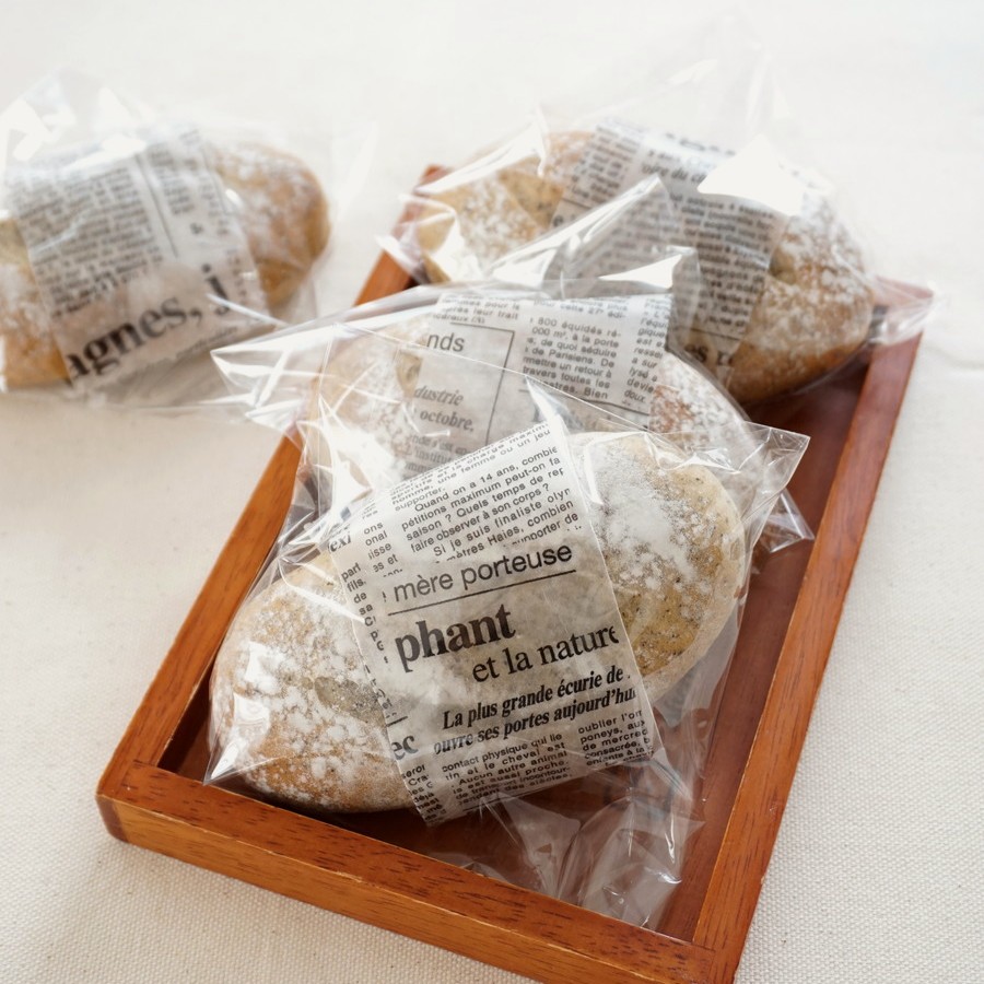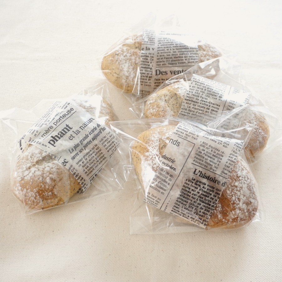 ワックスペーパーを縦4等分にし、パンに巻く。