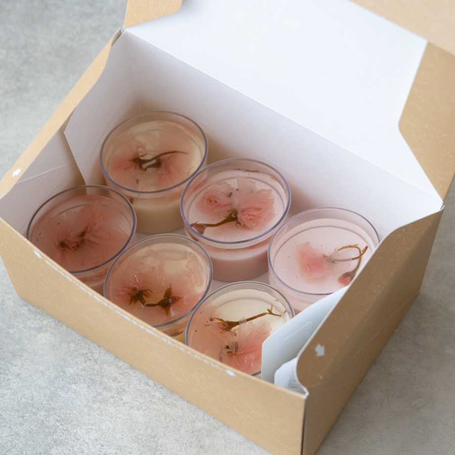 桜ペーストを使ったやさしいピンクの桜プリンと、まろやかな白いミルクプリン。