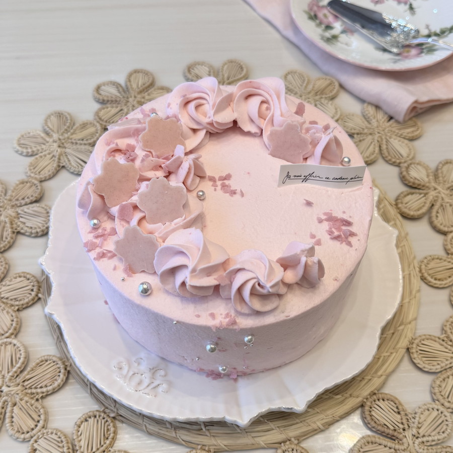 ミルクティー味のスポンジ生地に、桜味のクリームで作った桜ショートケーキです。