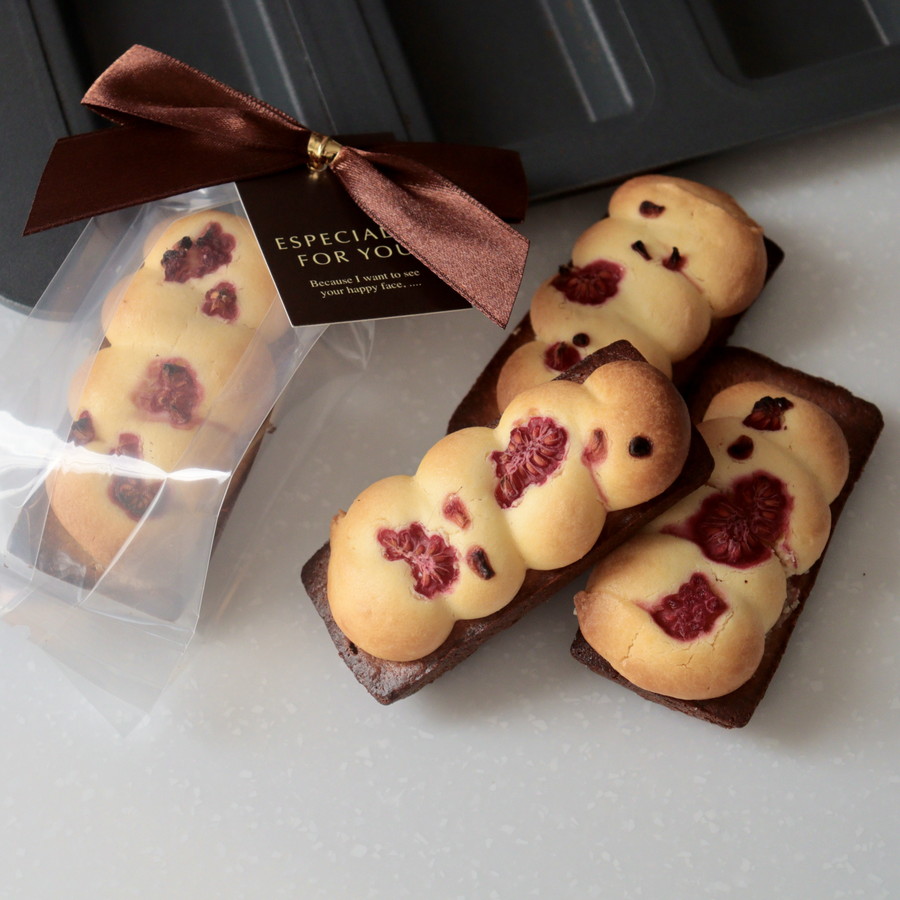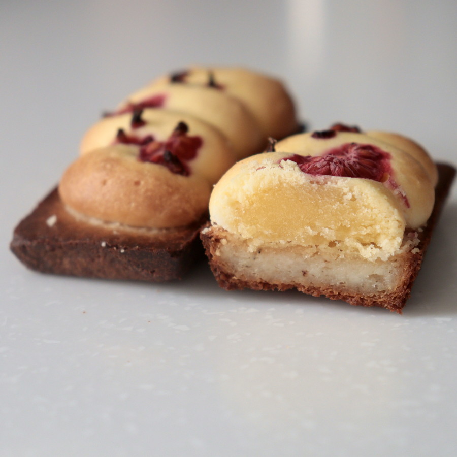 しっとりとしたフィナンシェの食感とサクサクとしたクッキー、そしてクッキーに乗せたラズベリーが甘酸っぱいアクセント。