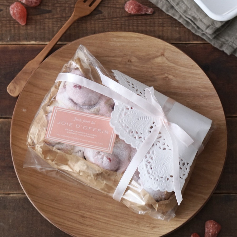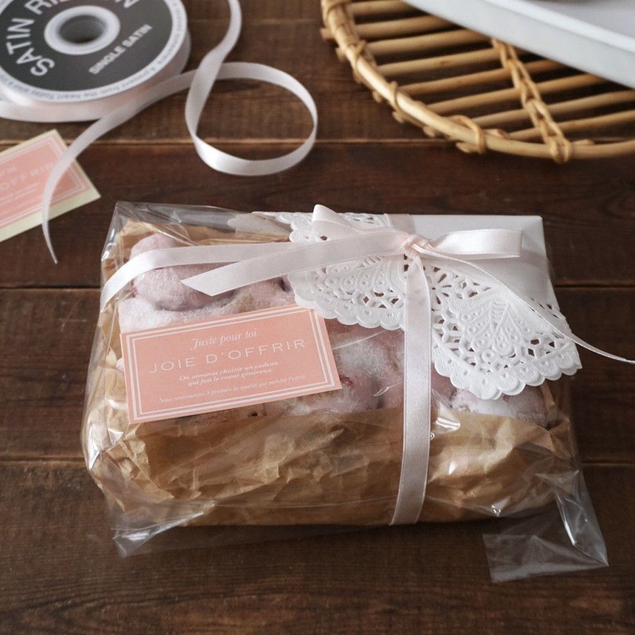この時外れにくいように、レースペーパーの内側に両面テープなどをつけておくと見栄え良く、ラッピングしやすい。